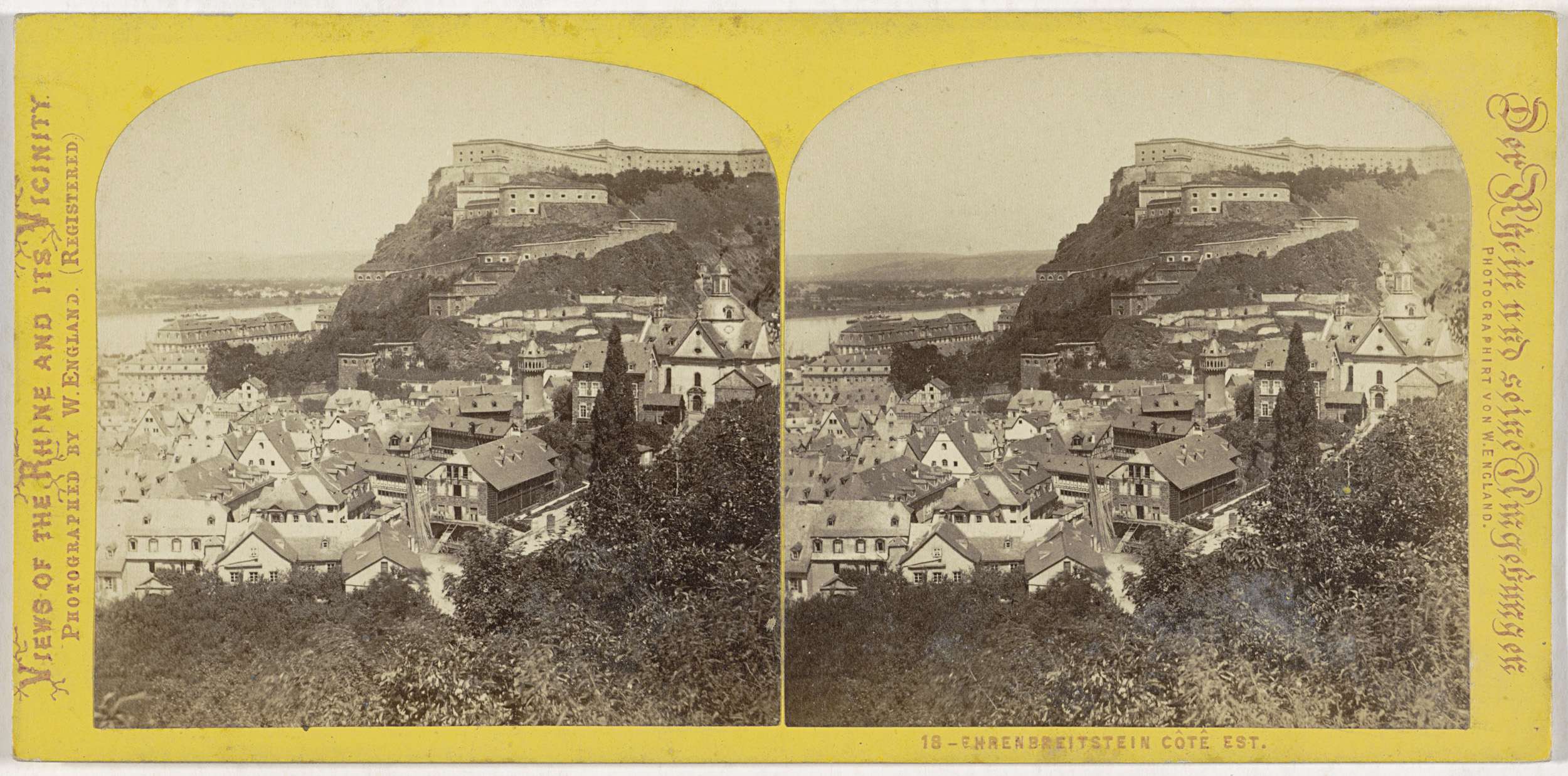 Gezicht op fort Ehrenbreitstein nabij Koblenz en de Moezel, Duitsland