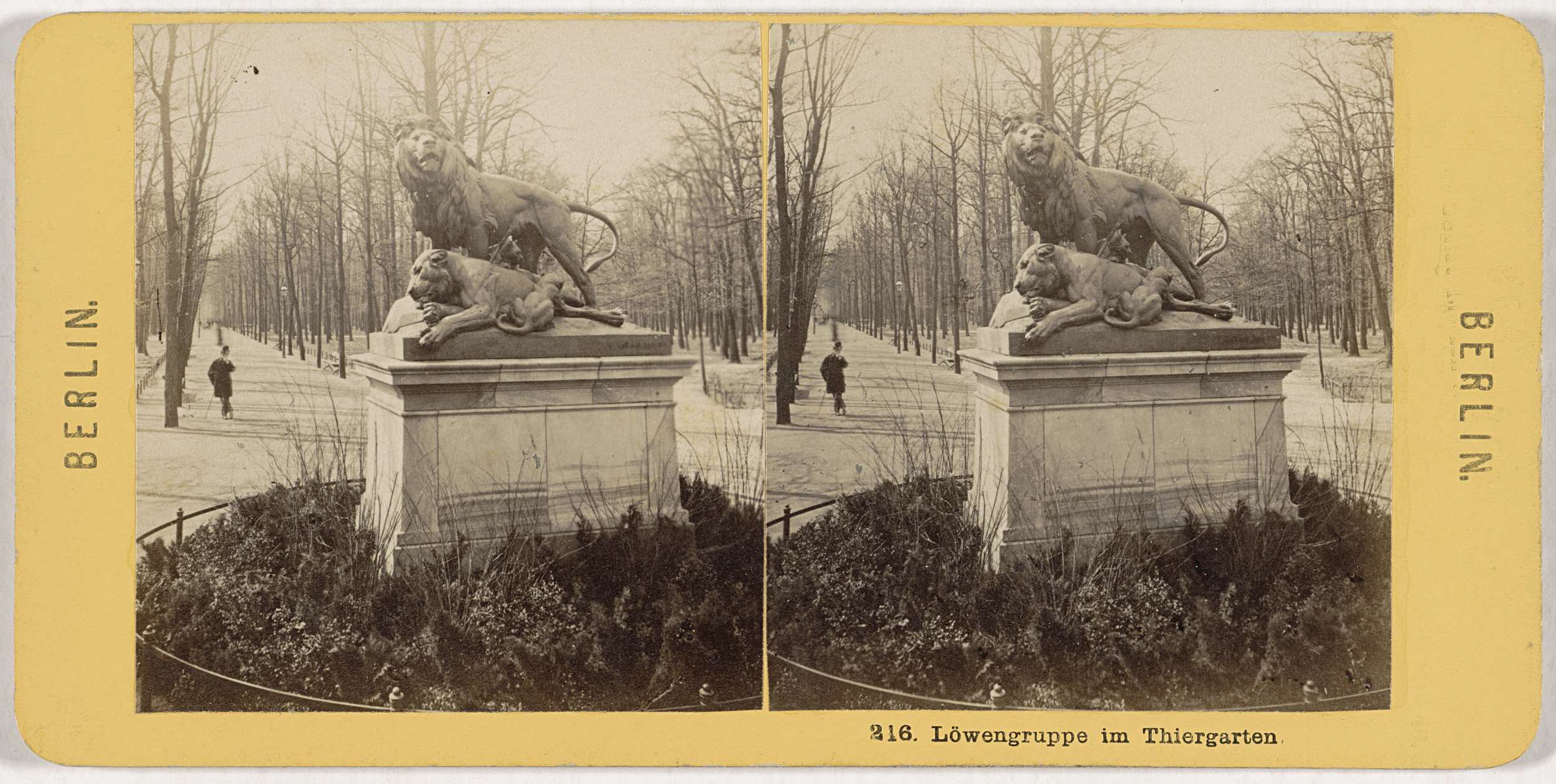 Standbeeld met een groep leeuwen in Tiergarten, Berlijn