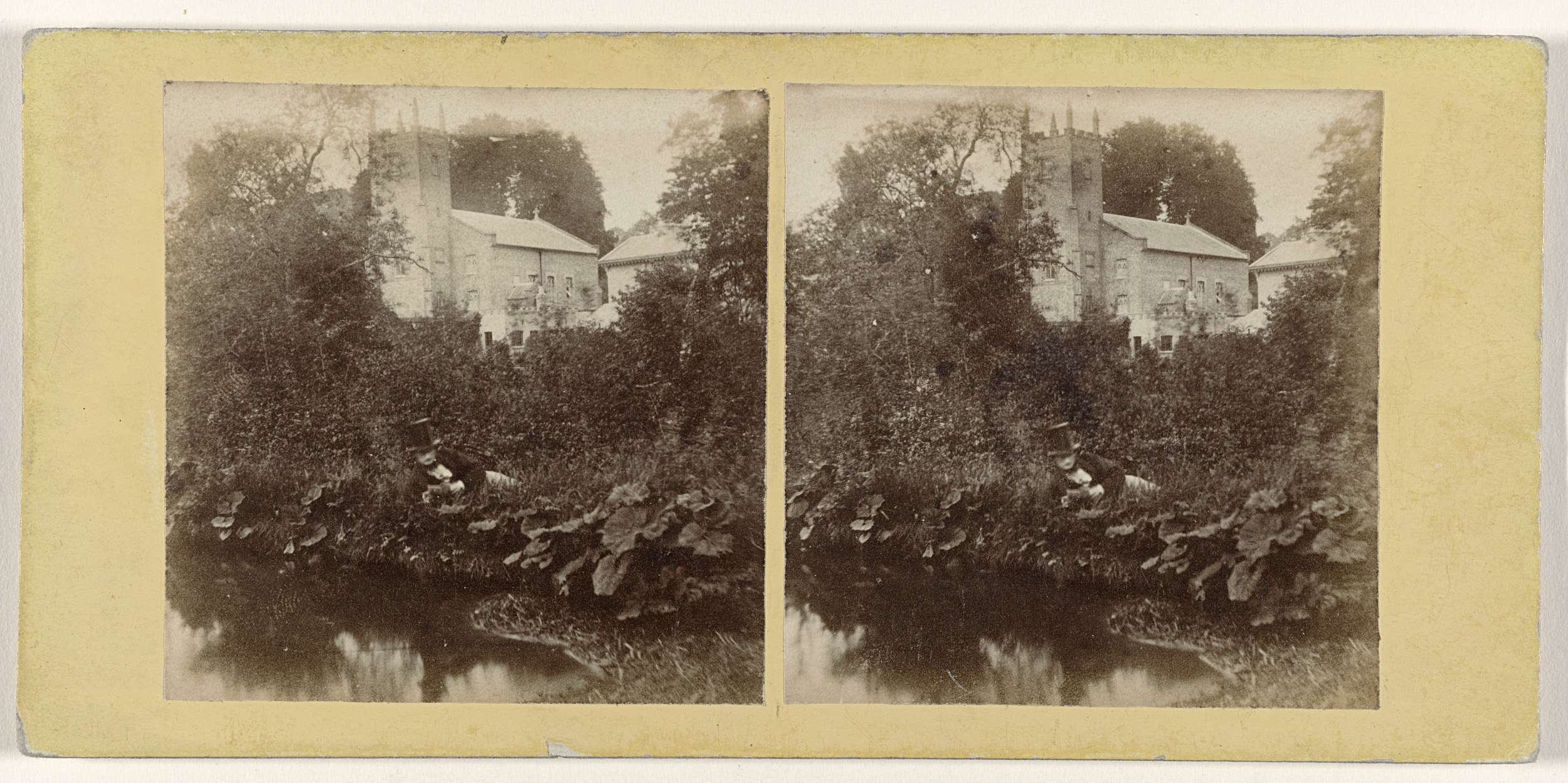 Gezicht op de kerk van Bishopstoke met op de rivieroever een man