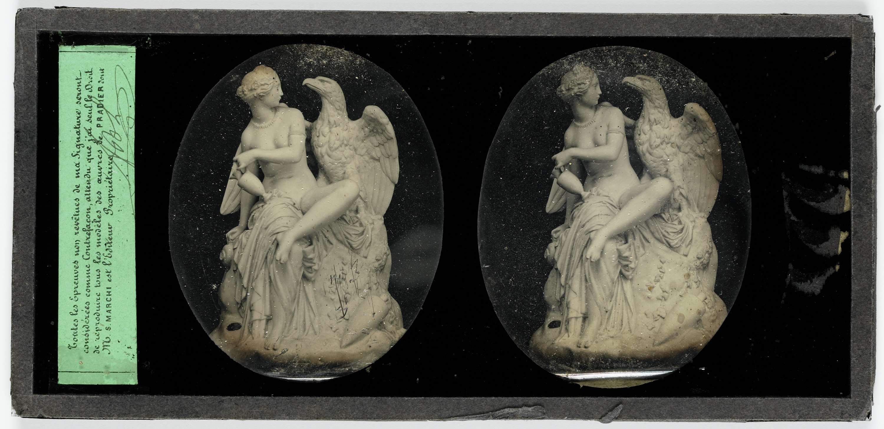 Kopie in pleister van James Pradiers sculptuur 'De adelaar van Jupiter krijgt te drinken van Hebe'.