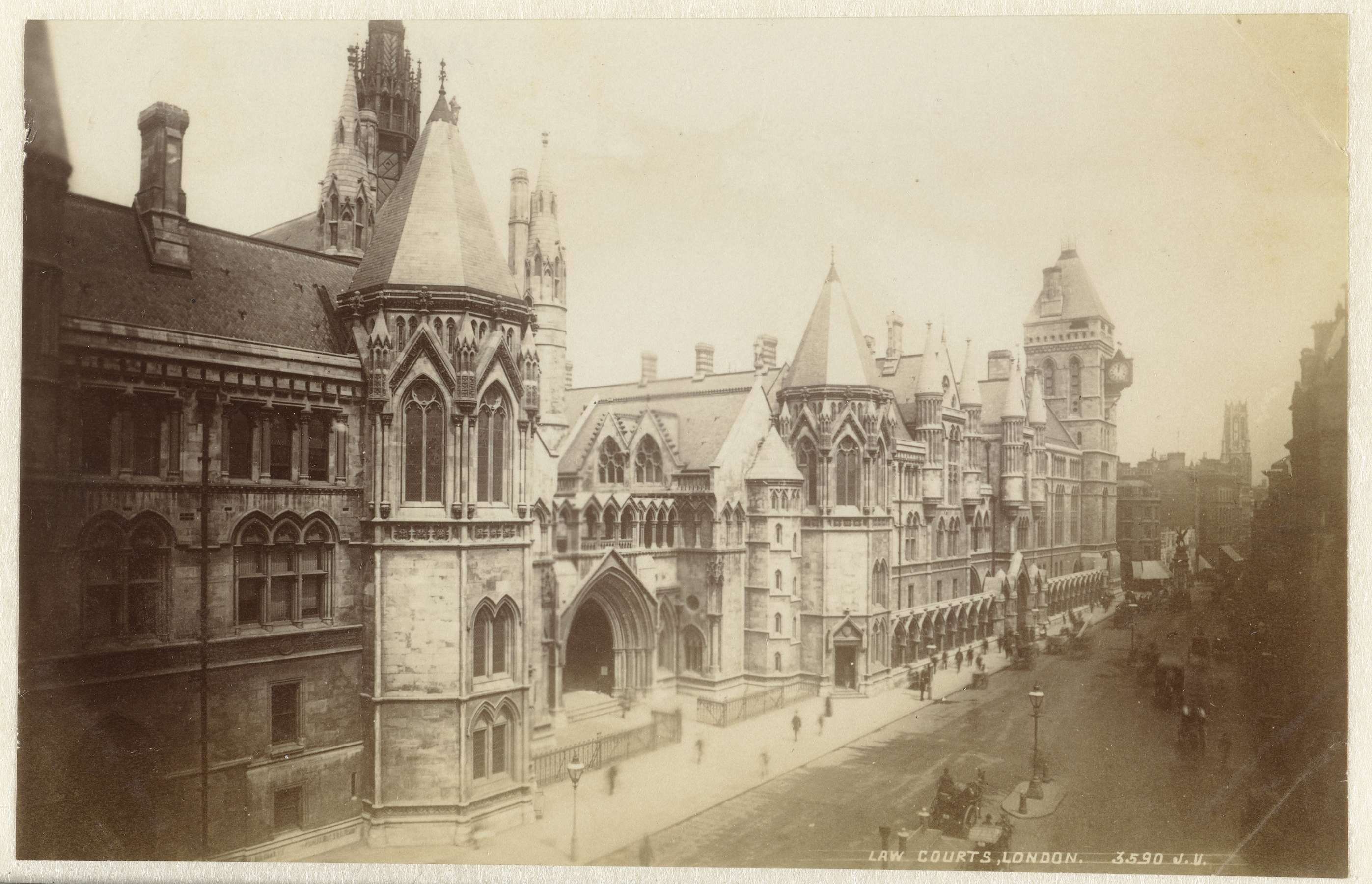 Gezicht op de Royal Courts of Justice aan Strand in Londen