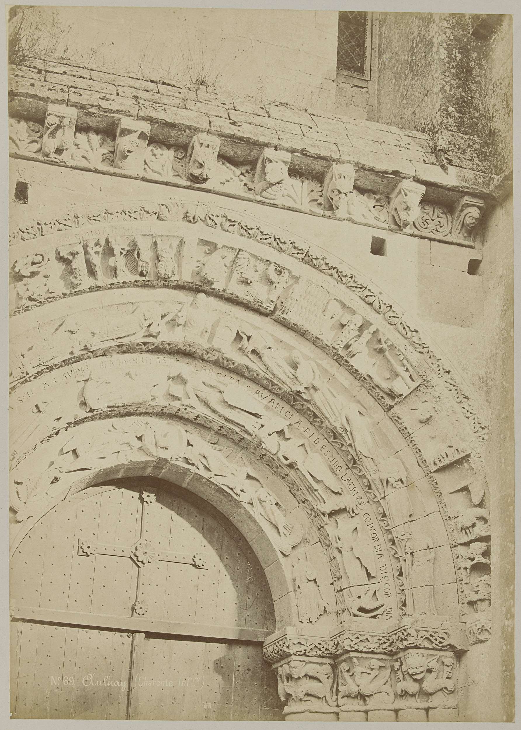 Beeldhouwwerken boven een portaal van de kerk van Saint-Pierre d'Aulnay