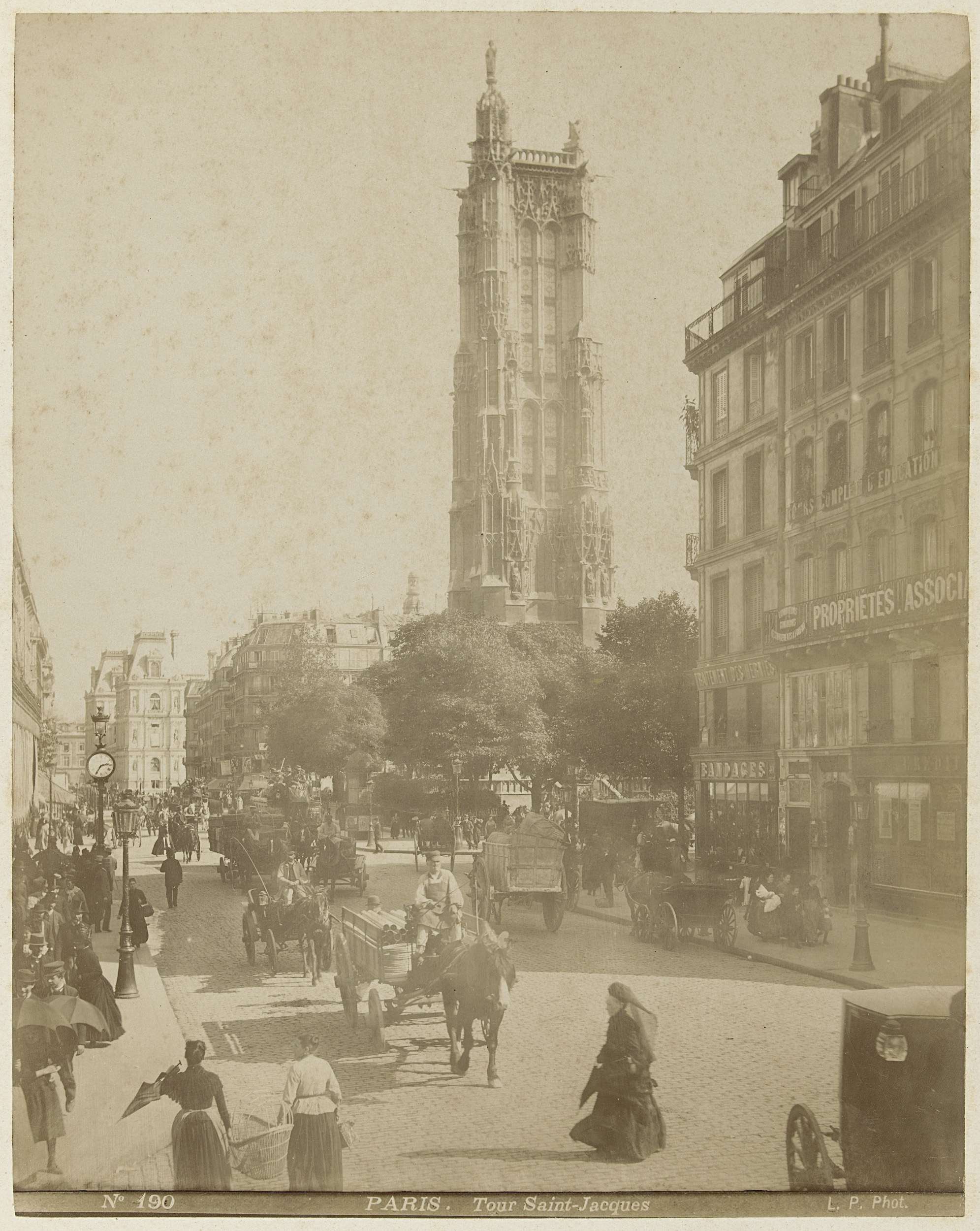 Straatgezicht in Parijs met op de achtergrond de Tour Saint-Jacques