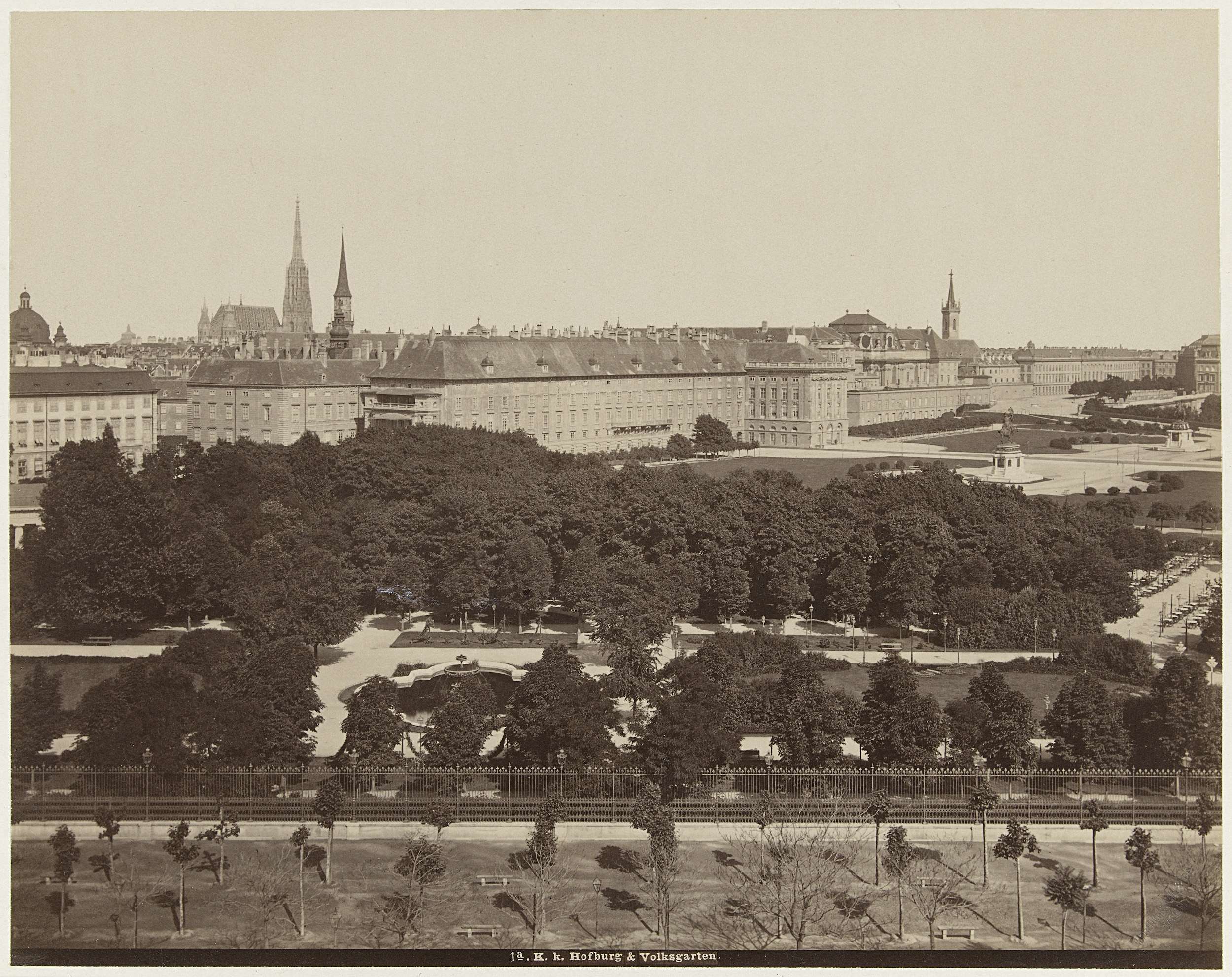 Gezicht op het Hofburg paleis en de Volksgarten in Wenen, Oostenrijk