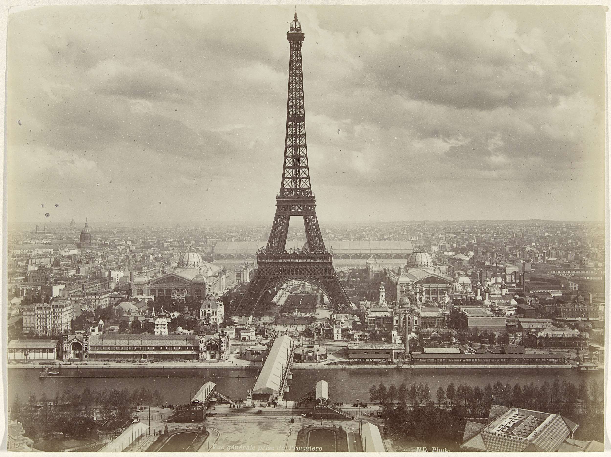 Gezicht op de Eiffeltoren en het Champ de Mars tijdens de Wereldtentoonstelling van 1889, Parijs