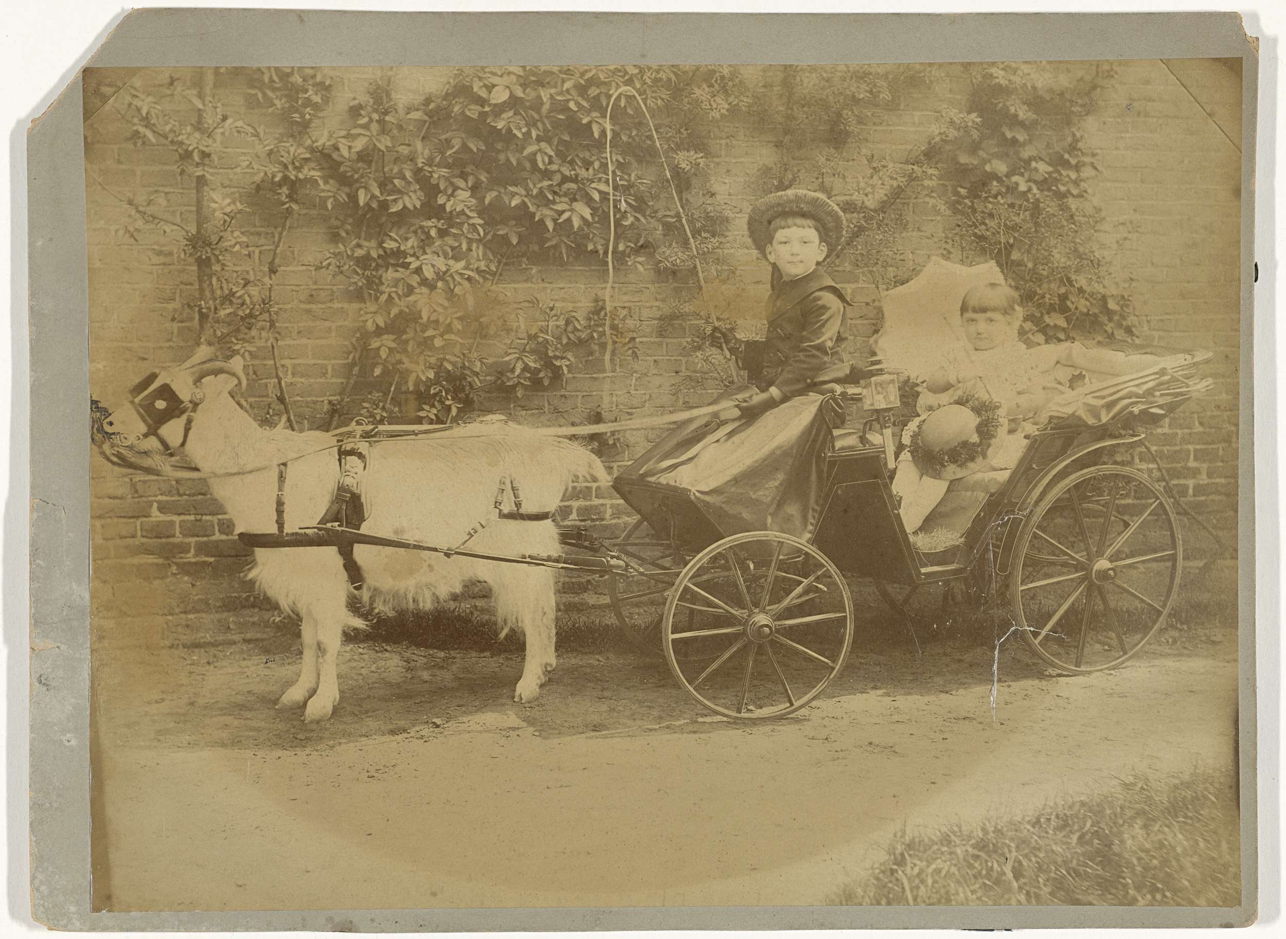 Rijtuig met kinderen getrokken door een bok