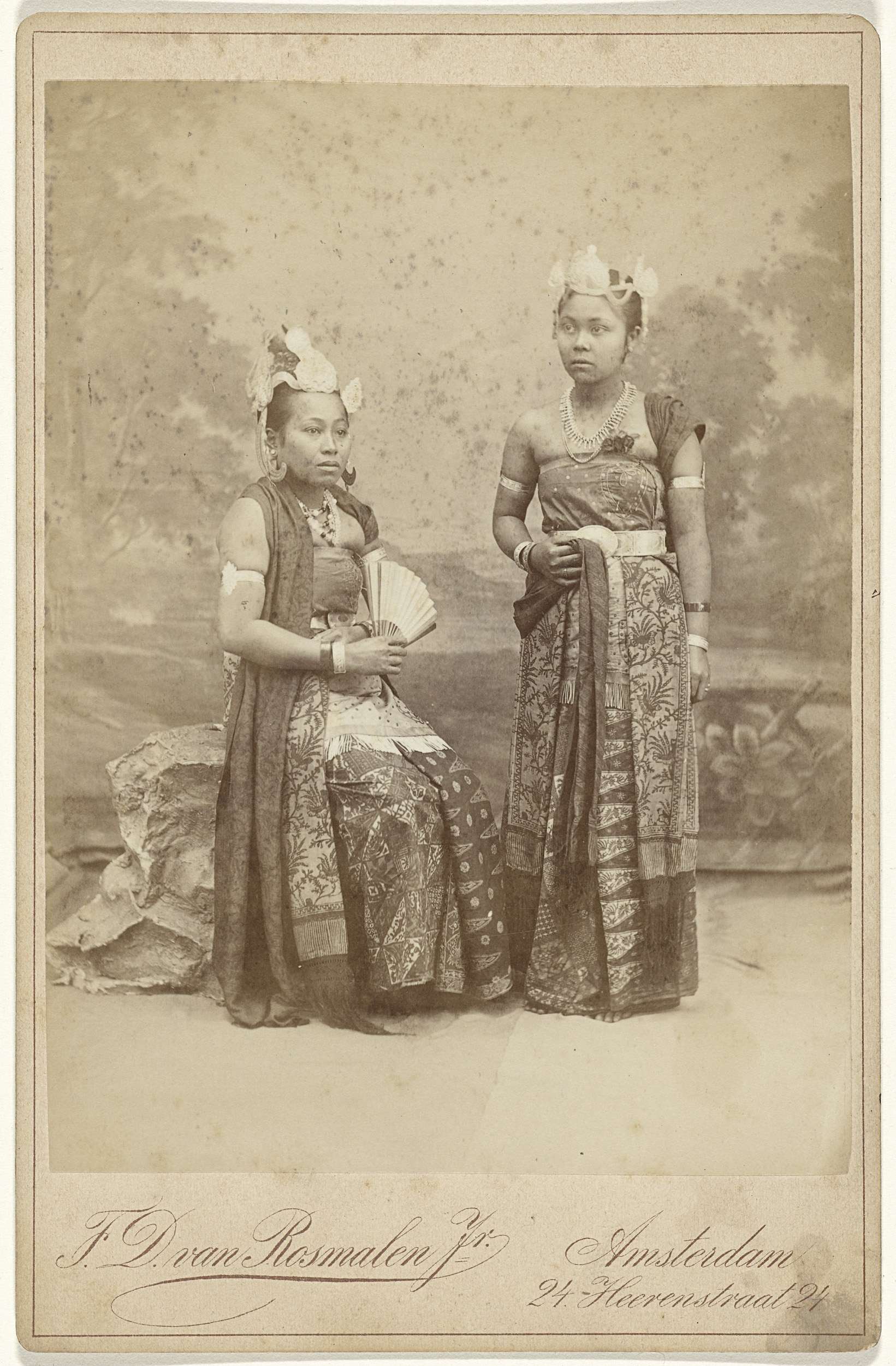 Portret van twee onbekende vrouwen in Javaanse batiks