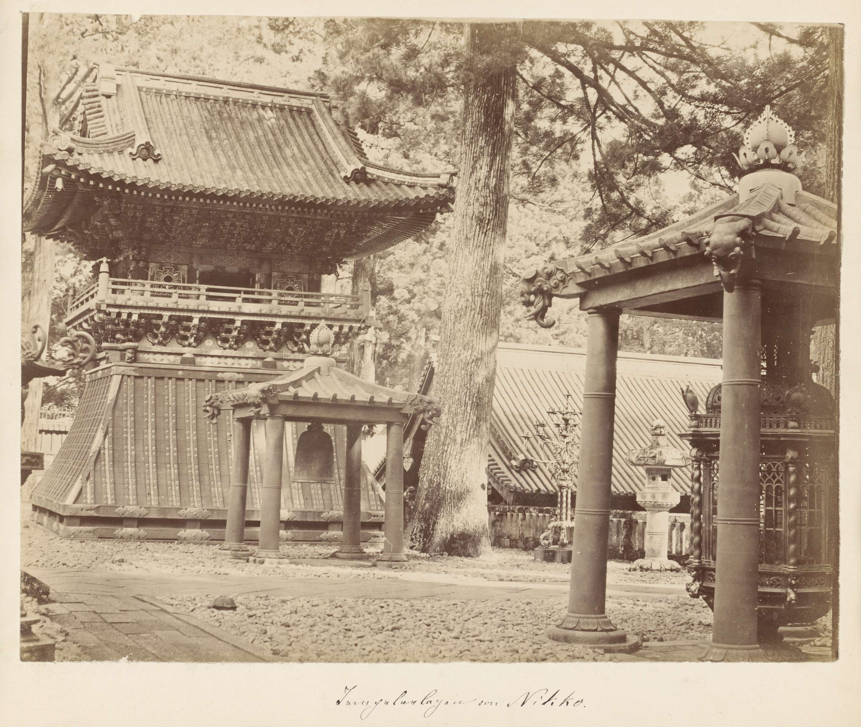 Gezicht op Nikkō Tōshō-gū bij Nikko, rechts een oranda dōrō