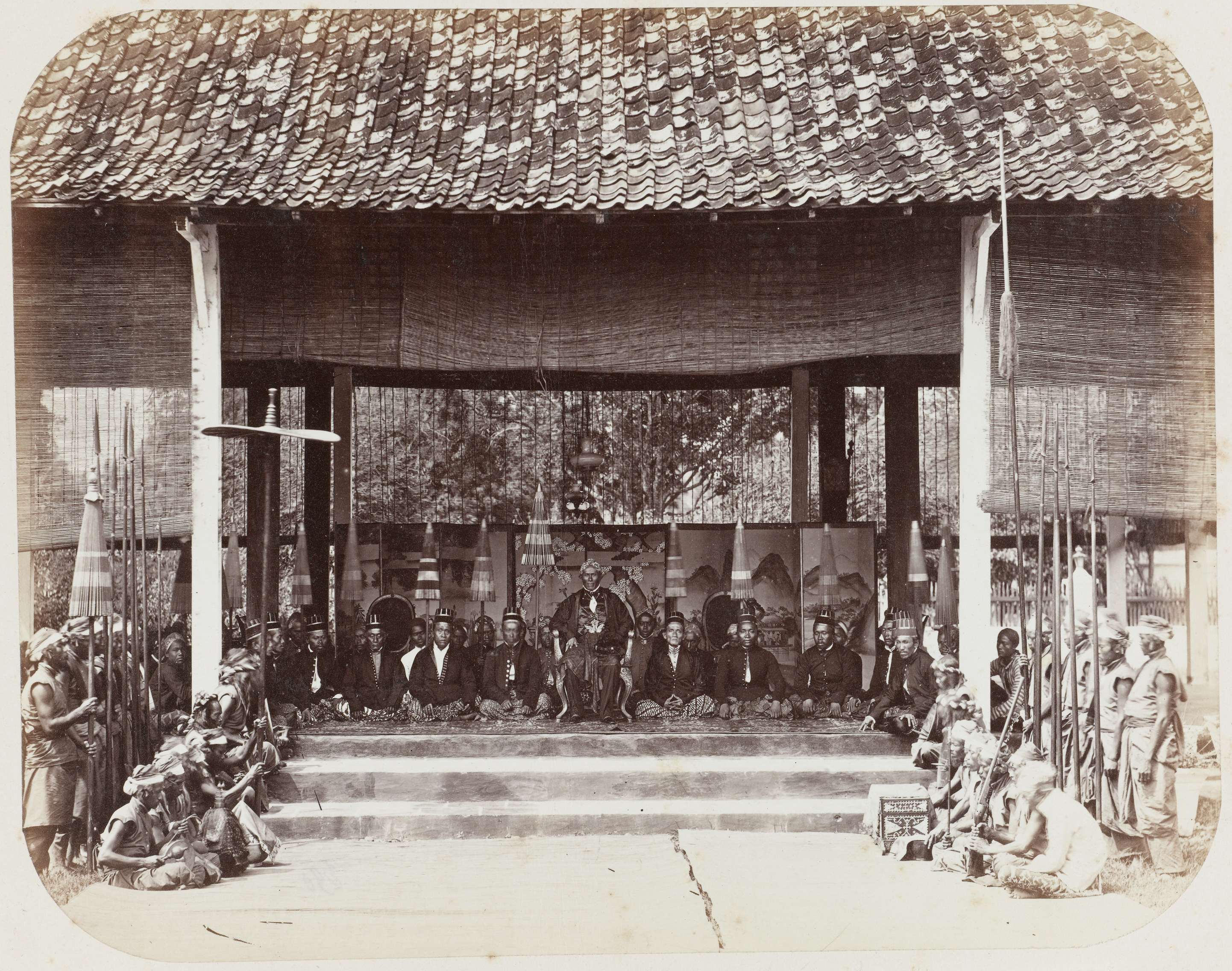 Groepsportret van een Indonesische vorst en edelen bij een officiële gelegenheid in Pati, Jepara