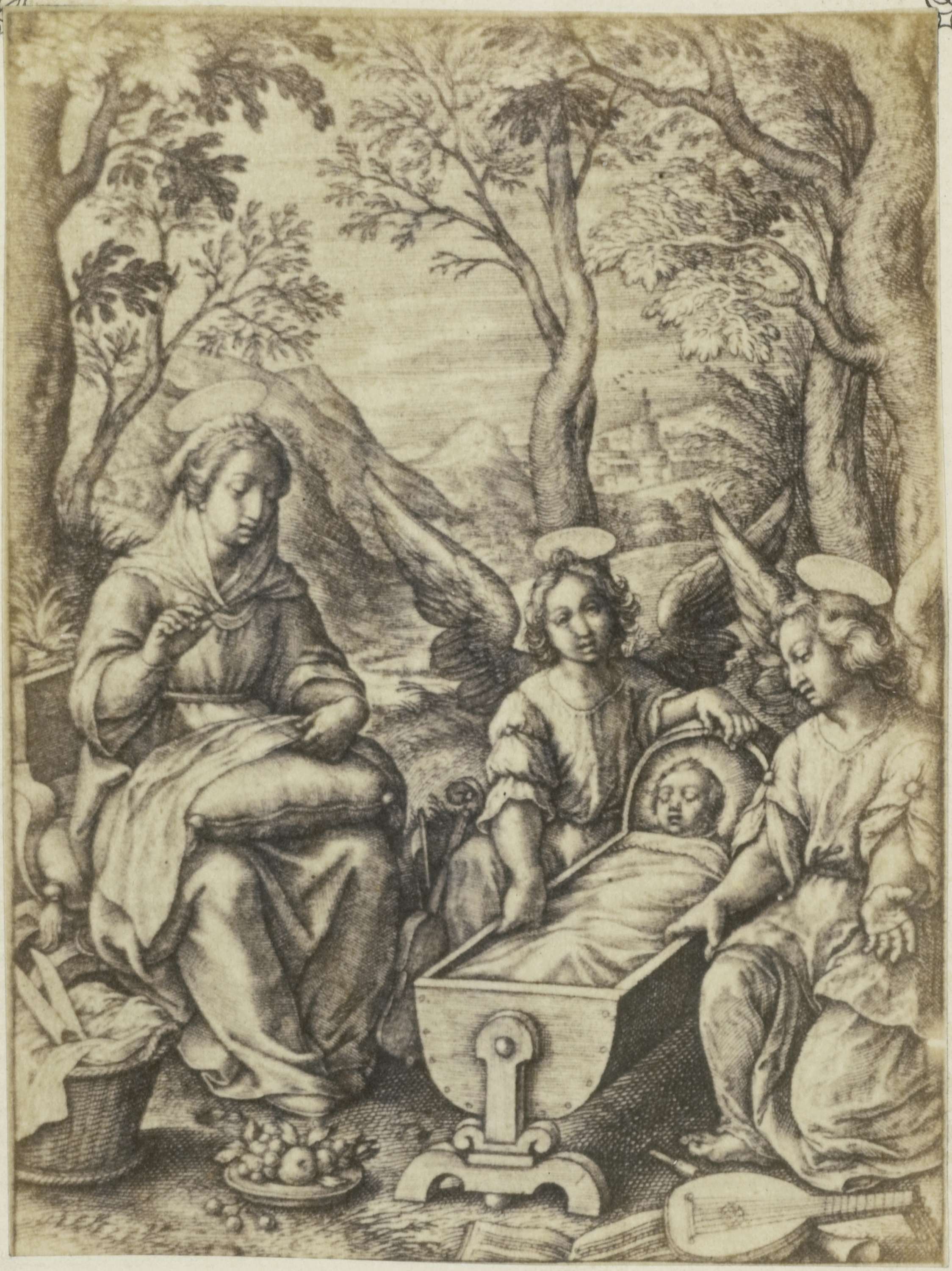 Fotoreproductie van de gravure Le sommeil de Jesus door Hieronymus Wierix
