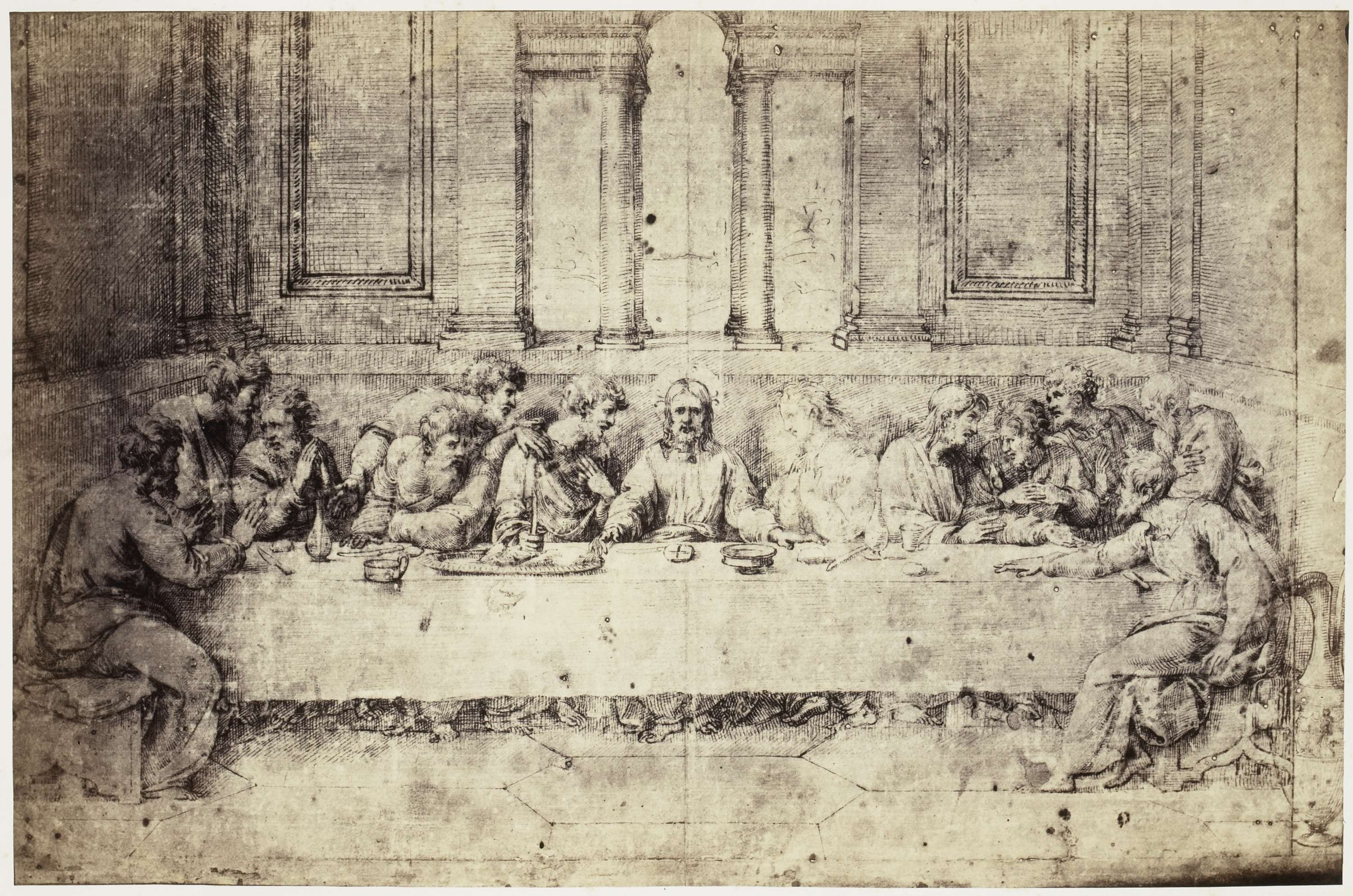 Fotoreproductie van een tekening van Rafaël, het Laatste Avondmaal