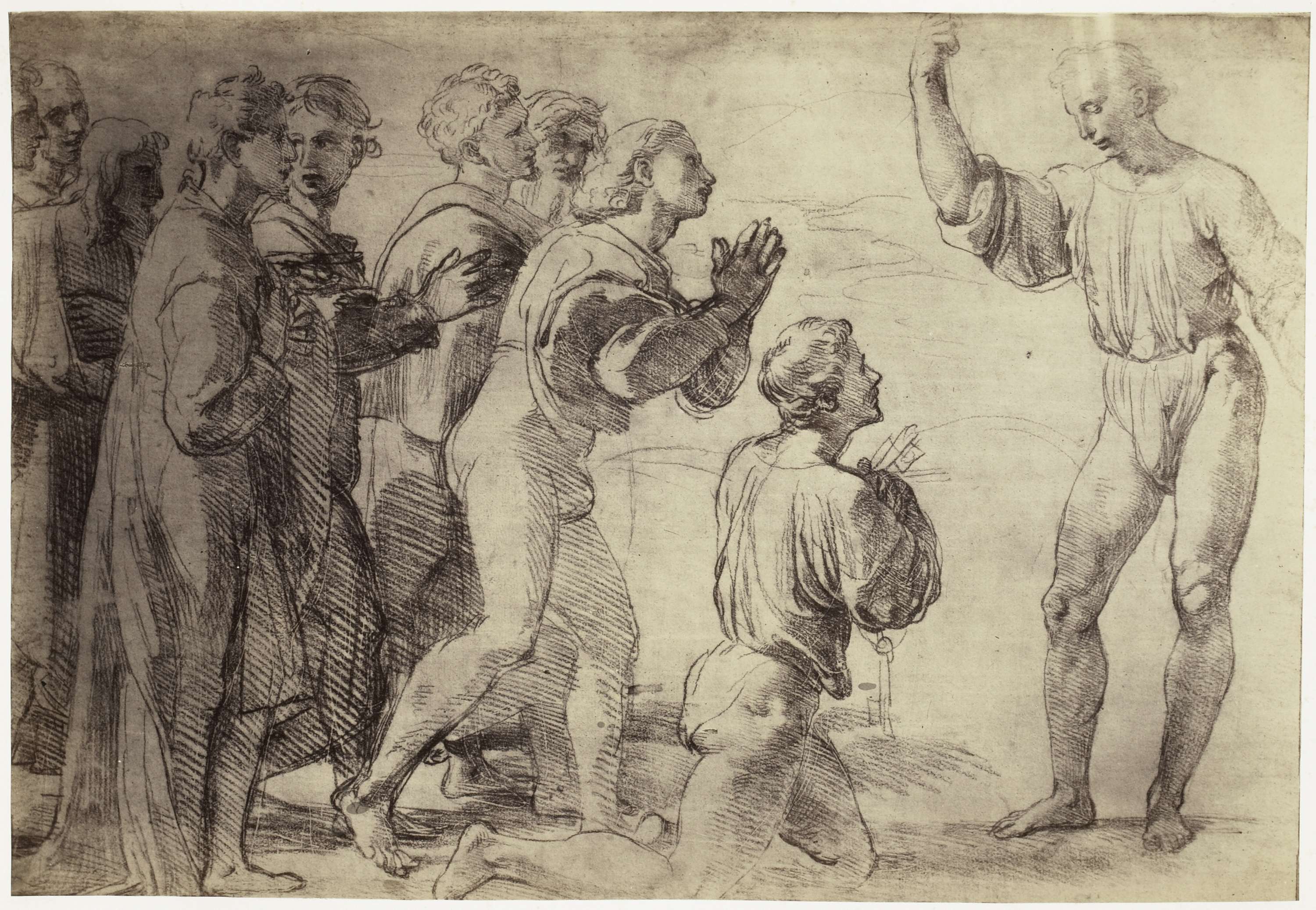 Fotoreproductie van een tekening van Rafaël, Christus geeft Petrus de sleutels van het koninkrijk van de hemel