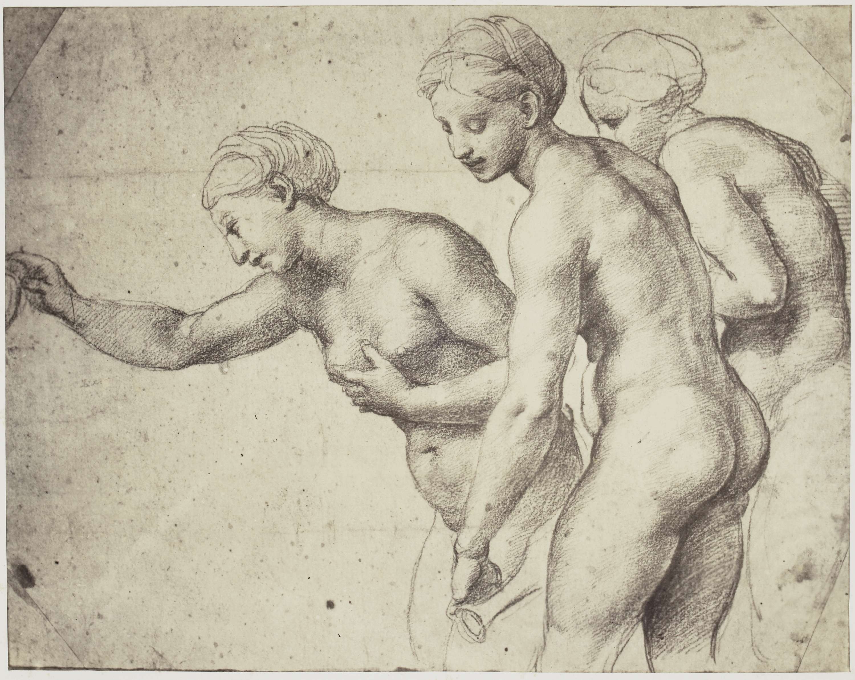 Fotoreproductie van een tekening van Rafaël, studie voor De drie Gratiën
