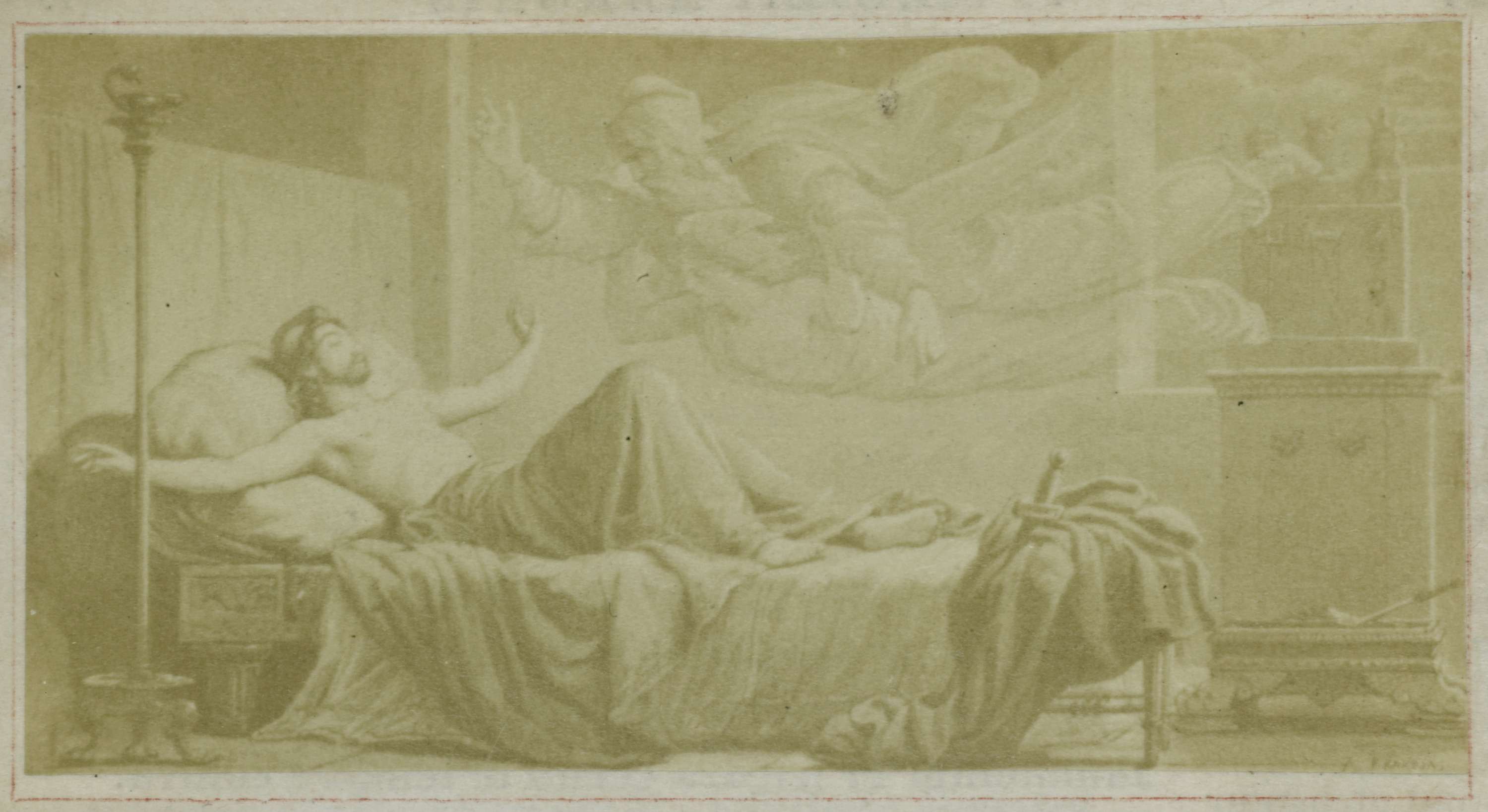 Fotoreproductie van een schilderij, voorstellende Aeneas wordt bezocht door de schim van Anchises, scène uit Virgilius' Aeneis