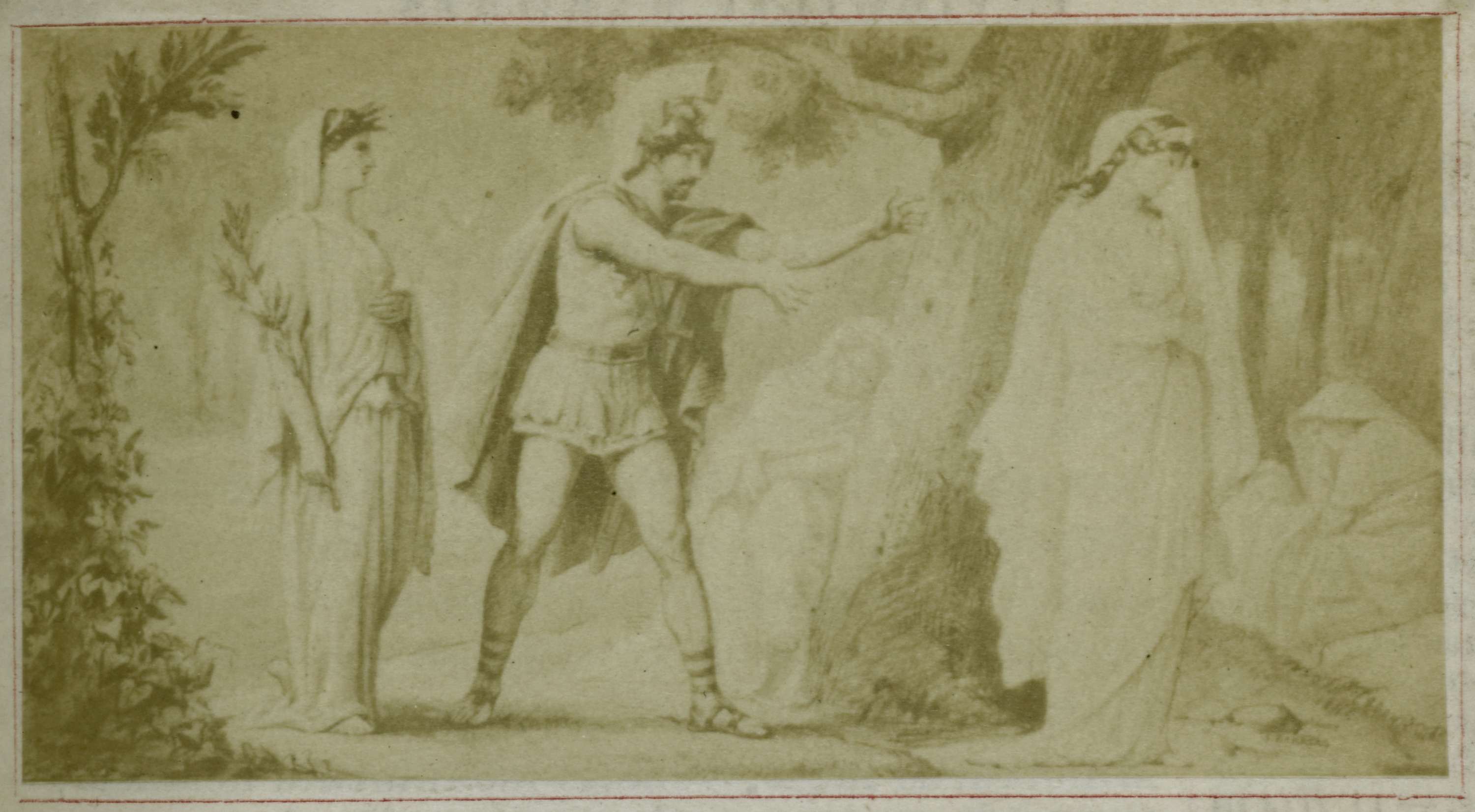 Fotoreproductie van een schilderij, voorstellende Aeneas ziet de schim van Dido in de onderwereld, scène uit Virgilius' Aeneis