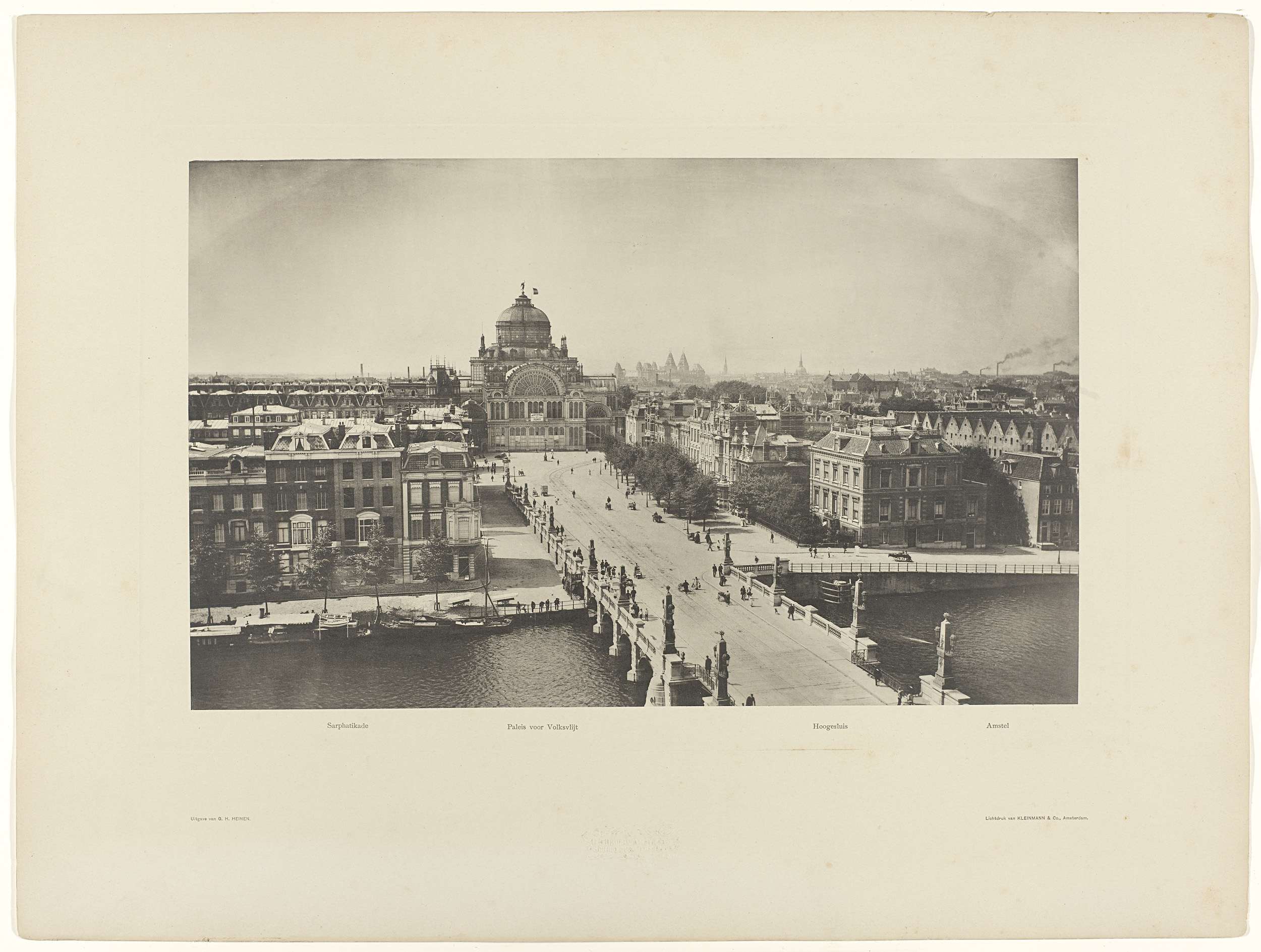 Paleis voor Volksvlijt en Hoge Sluis, gezien vanaf het Amstel Hotel, Amsterdam