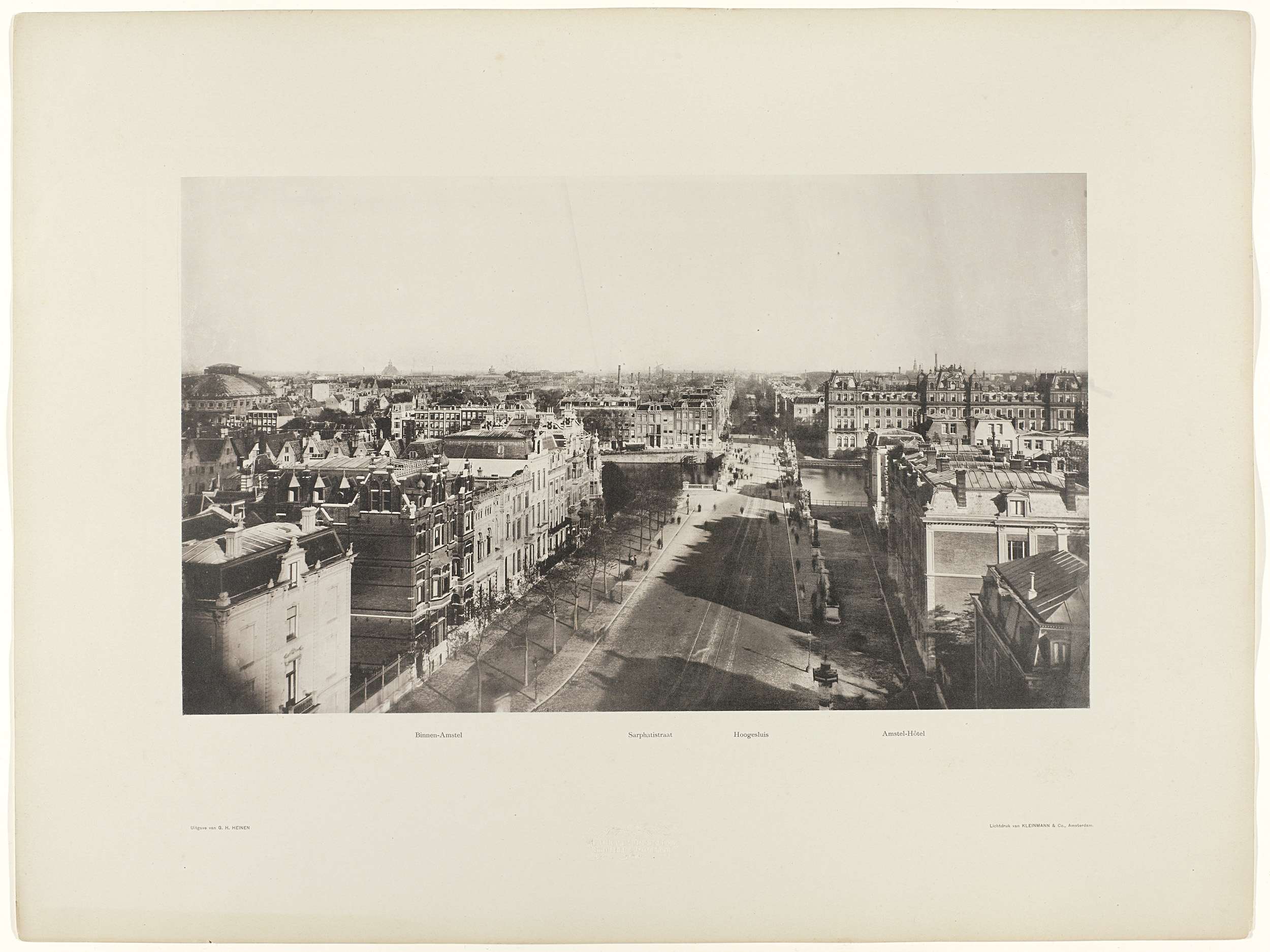Het snel veranderende Amsterdam vormde bij het aanbreken van de 20ste eeuw het decor voor fotograaf en decoratieschilder Heinen. Met zijn camera beklom hij hoge gebouwen, zoals het Paleis voor Volksvlijt (in 1929 afgebrand) en het Rijksmuseum, om van bovenaf zijn panorama’s te maken.