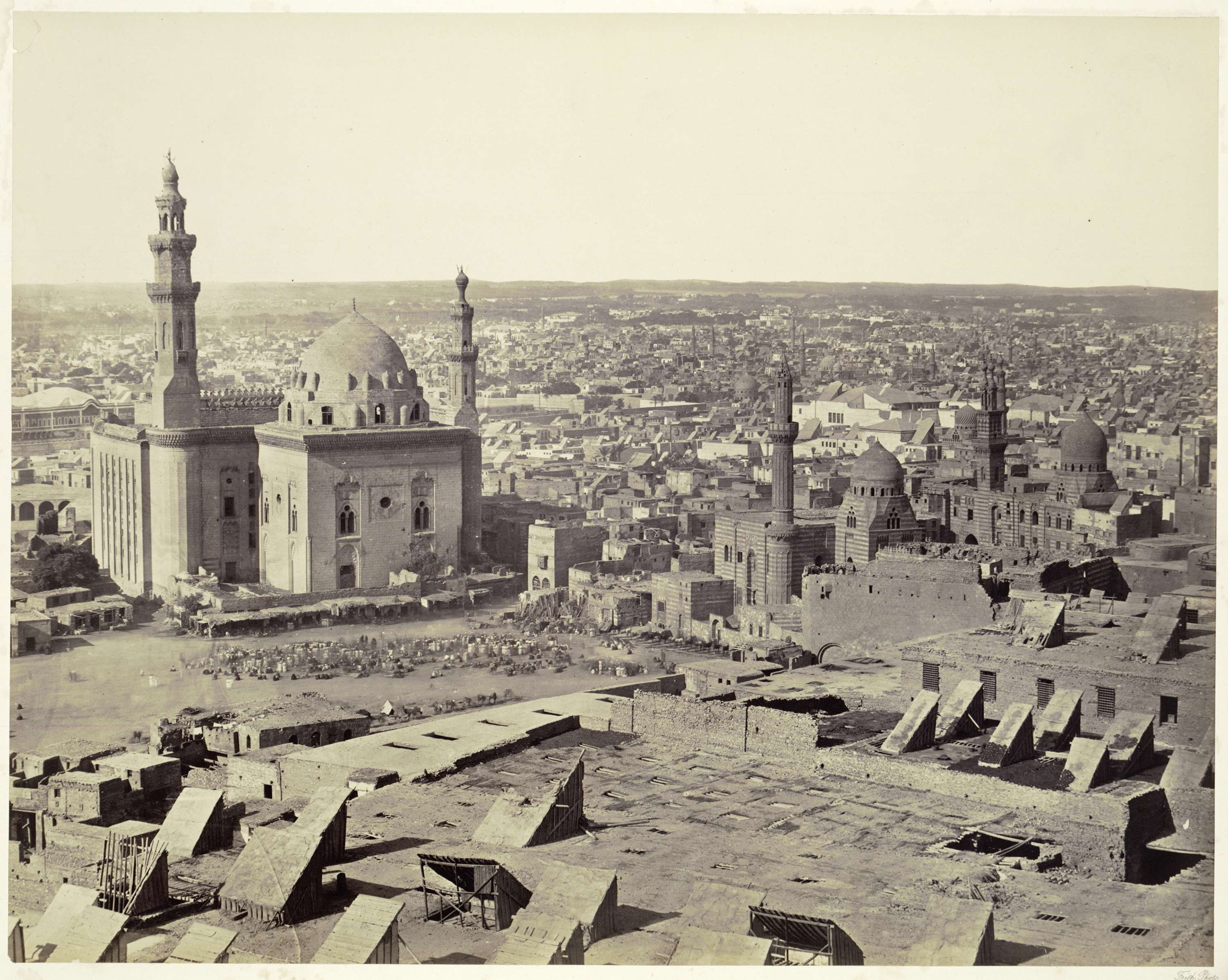 Cairo, gezien vanaf de citadel. Eerste foto uit een serie van zeven met een panorama van Cairo.