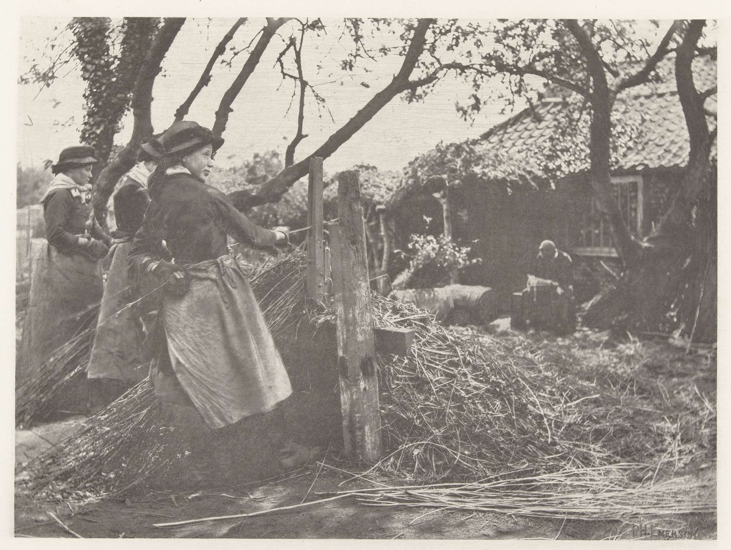 In 1888 publiceerde Emerson het fotoboek Pictures of East Anglian Life. Deze foto van meisjes die de wilgentakken van hun bast ontdoen, is een voorbeeld van zijn streven om het werkelijke leven van de mensen op het land te tonen. Emerson probeerde niet te ensceneren, maar louter te documenteren, zoals hij in 1889 schreef in ...