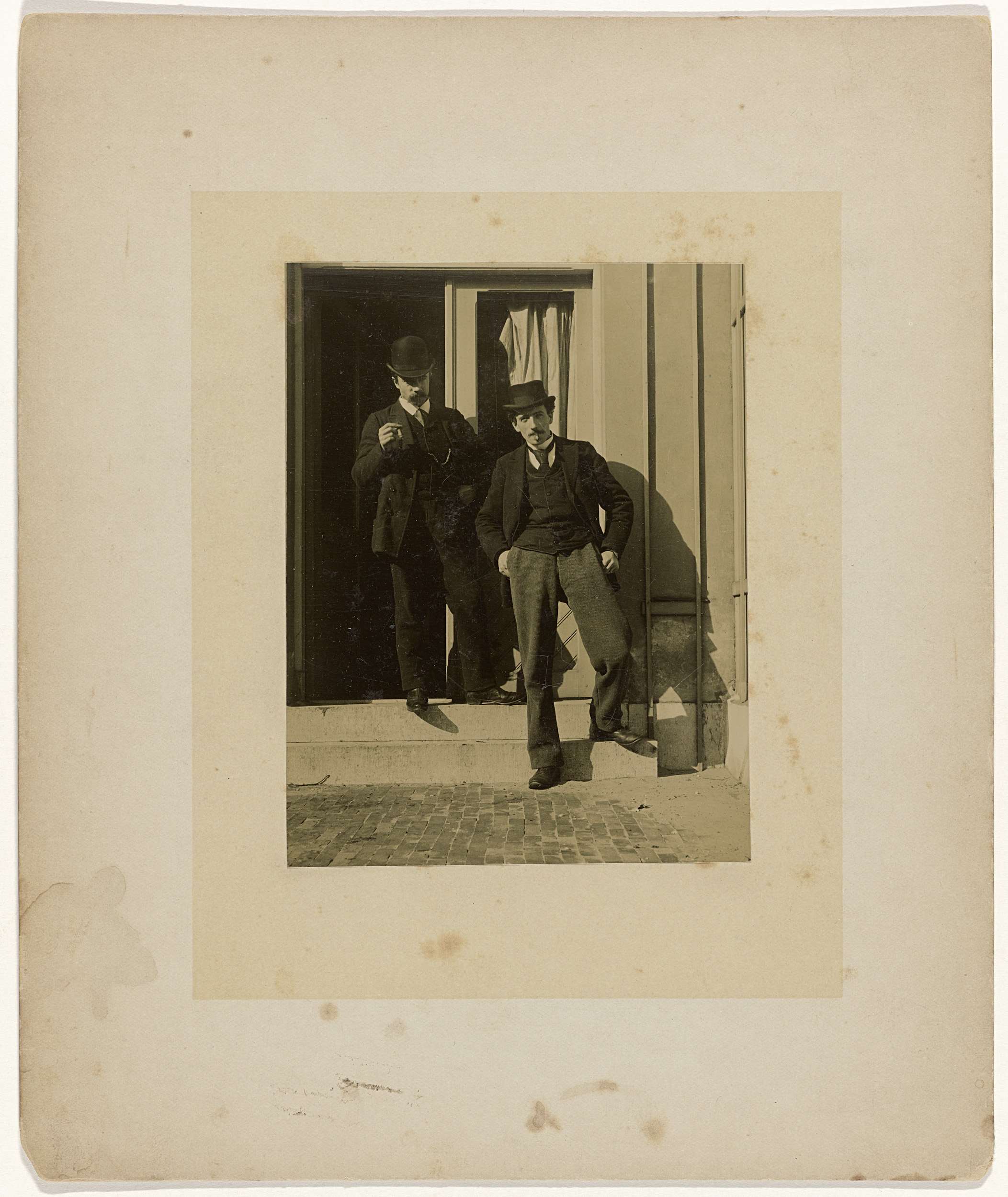 Portret van Eduard Karsen en Petrus Christiaan Eilers in de tuin van Oosterpark 82