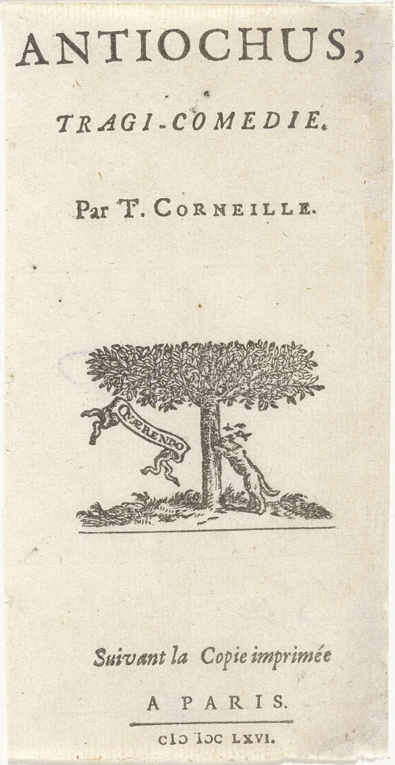 In het midden staat een hond rechtop tegen een boom. Hij zoekt iets in het gat van de boom. Links de Latijnse vertaling van 'al zoekend' op een spreukband.