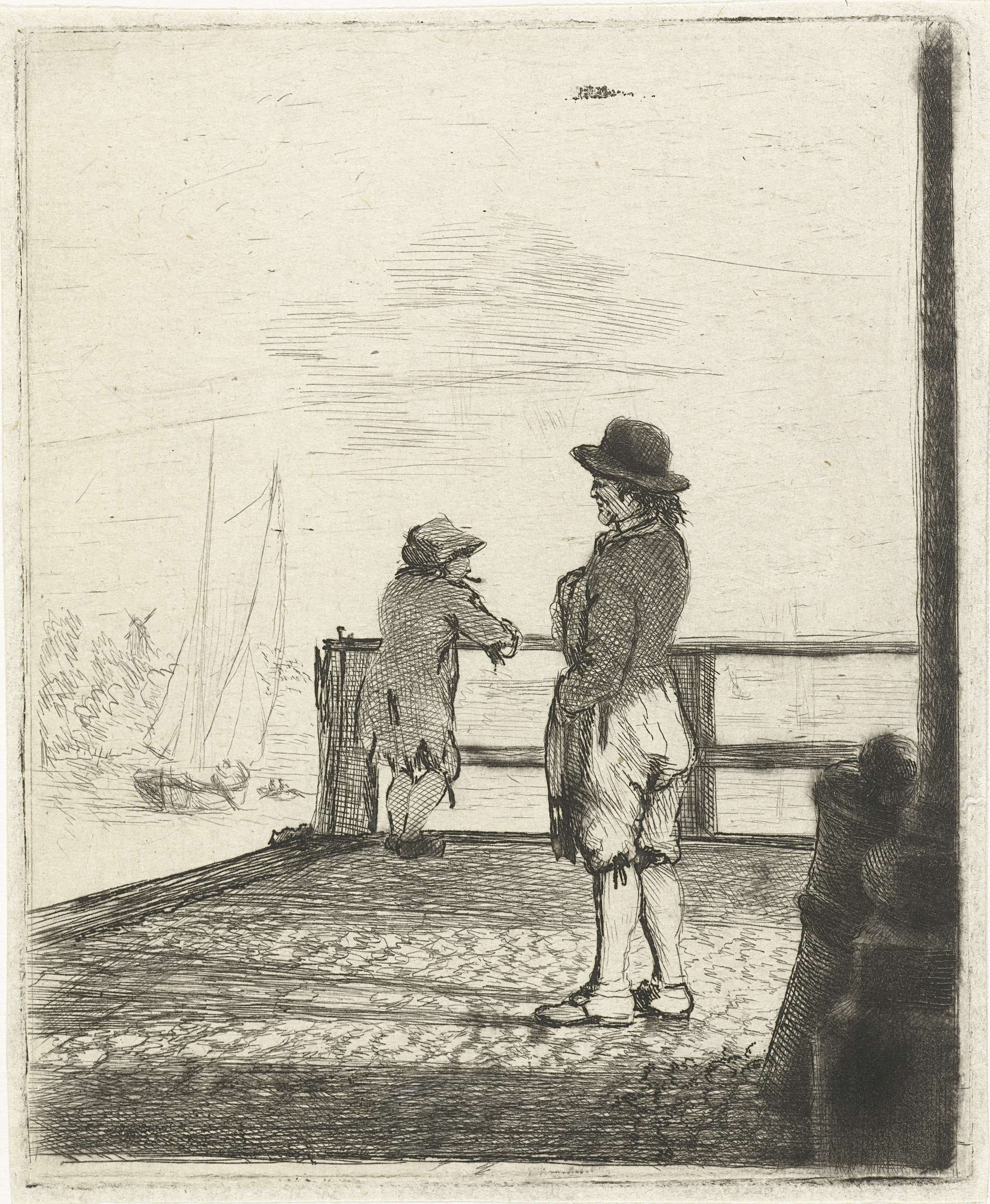 Twee matrozen wachten in de haven