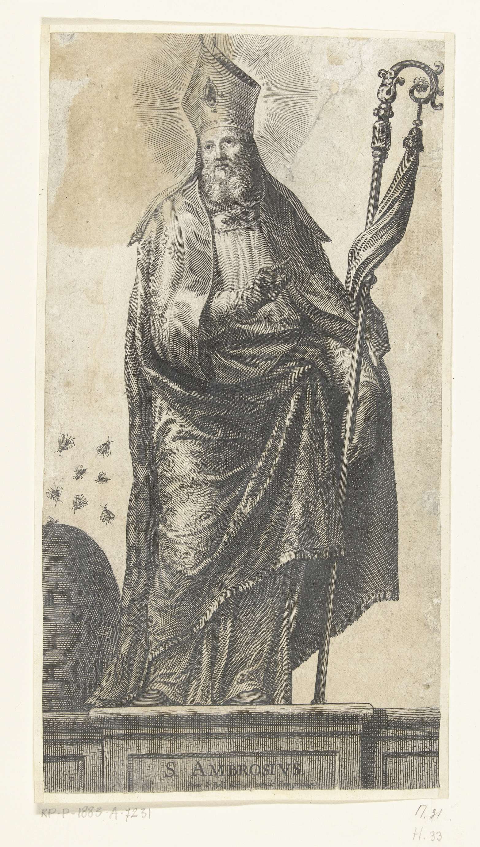 Heilige Ambrosius als bisschop met bijenkorf