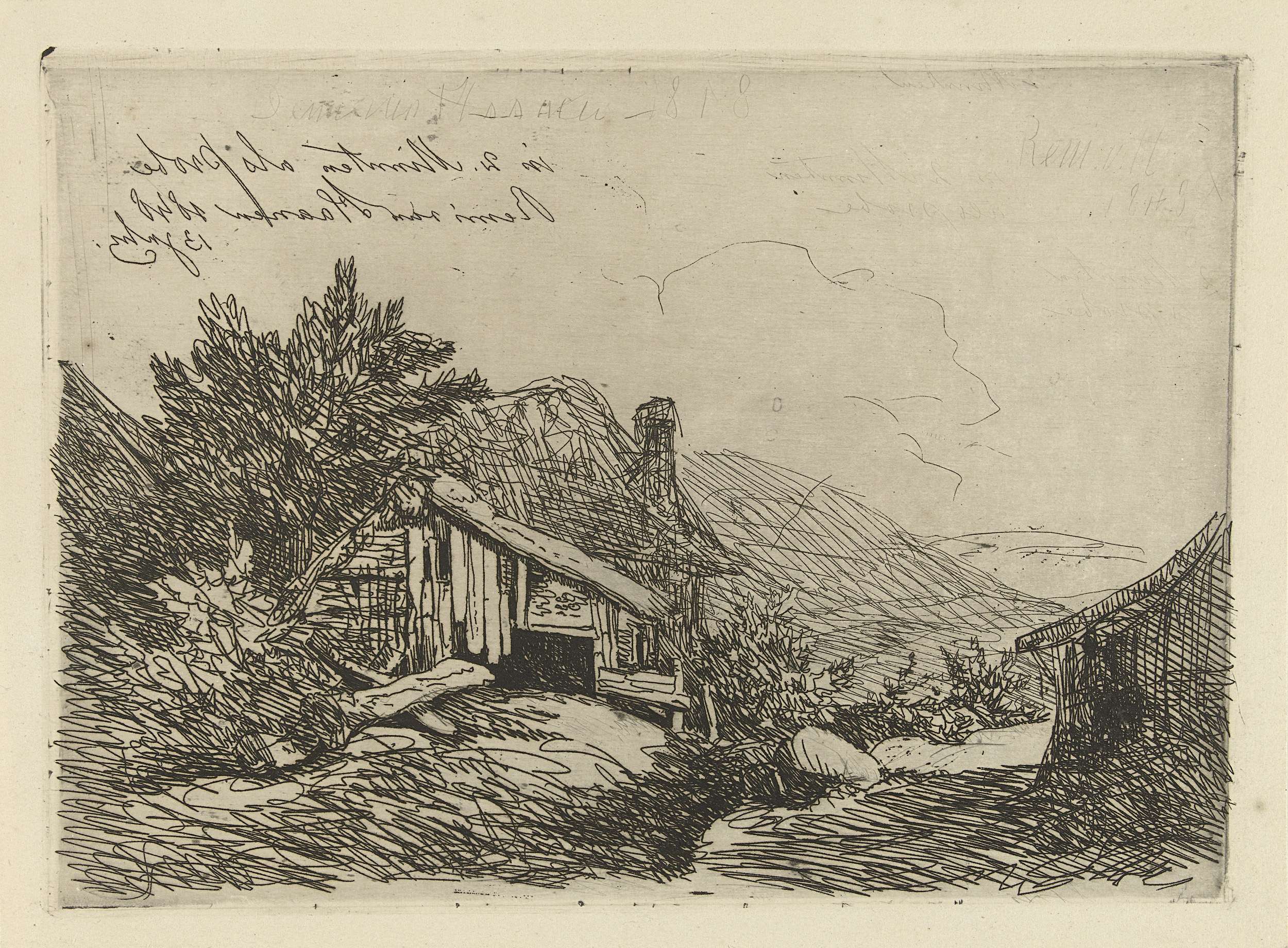 Landschap met vervallen hut