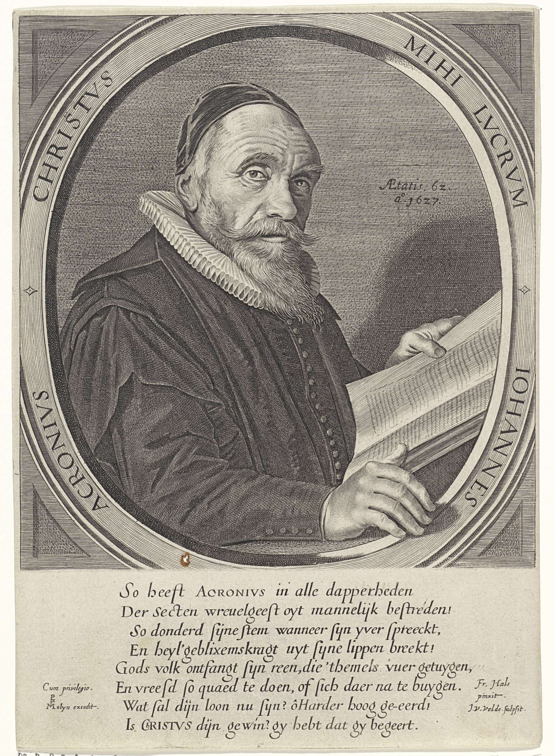 Portret van de theoloog en predikant Johannes Acronius op 62-jarige leeftijd.