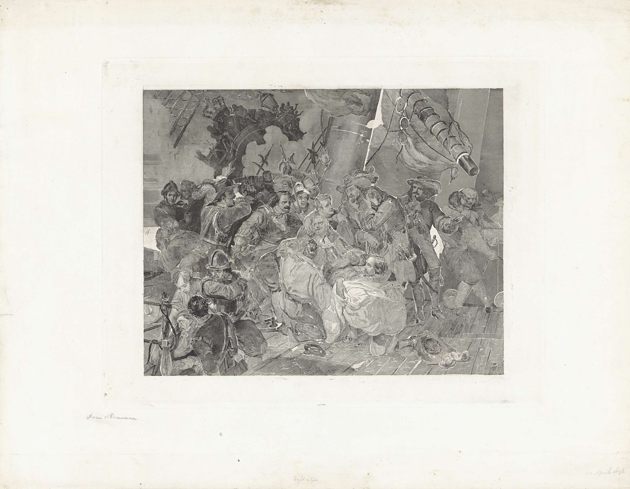 Admiraal Michiel Adriaenszoon de Ruyter raakt dodelijk gewond tijdens de zeeslag bij Agosta op 22 april 1676 tussen een gecombineerd Hollands-Spaanse vloot onder Michiel Adriaenszoon de Ruyter en een Franse vloot onder Abraham Duquesne met elkaar in gevecht. In alle hevigheid van de slag wordt De Ruyter door zijn bemanning in een laken gewikkeld en ...