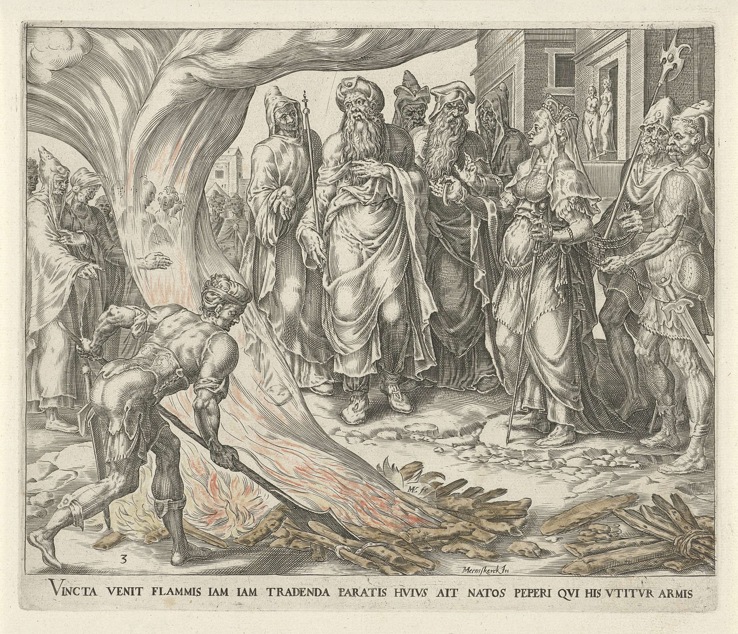 Juda laat het vuur opstoken om zijn schoondochter Tamar te verbranden. Hij wil haar straffen omdat ze zich als een hoer heeft gedragen en daardoor zwanger is geworden. Tamar toont hem echter zijn staf en zegelring, waarmee ze bewijst dat hij haar zwanger heeft gemaakt. Daarna erkent Juda dat hij schuldig is en Tamar niet. ...