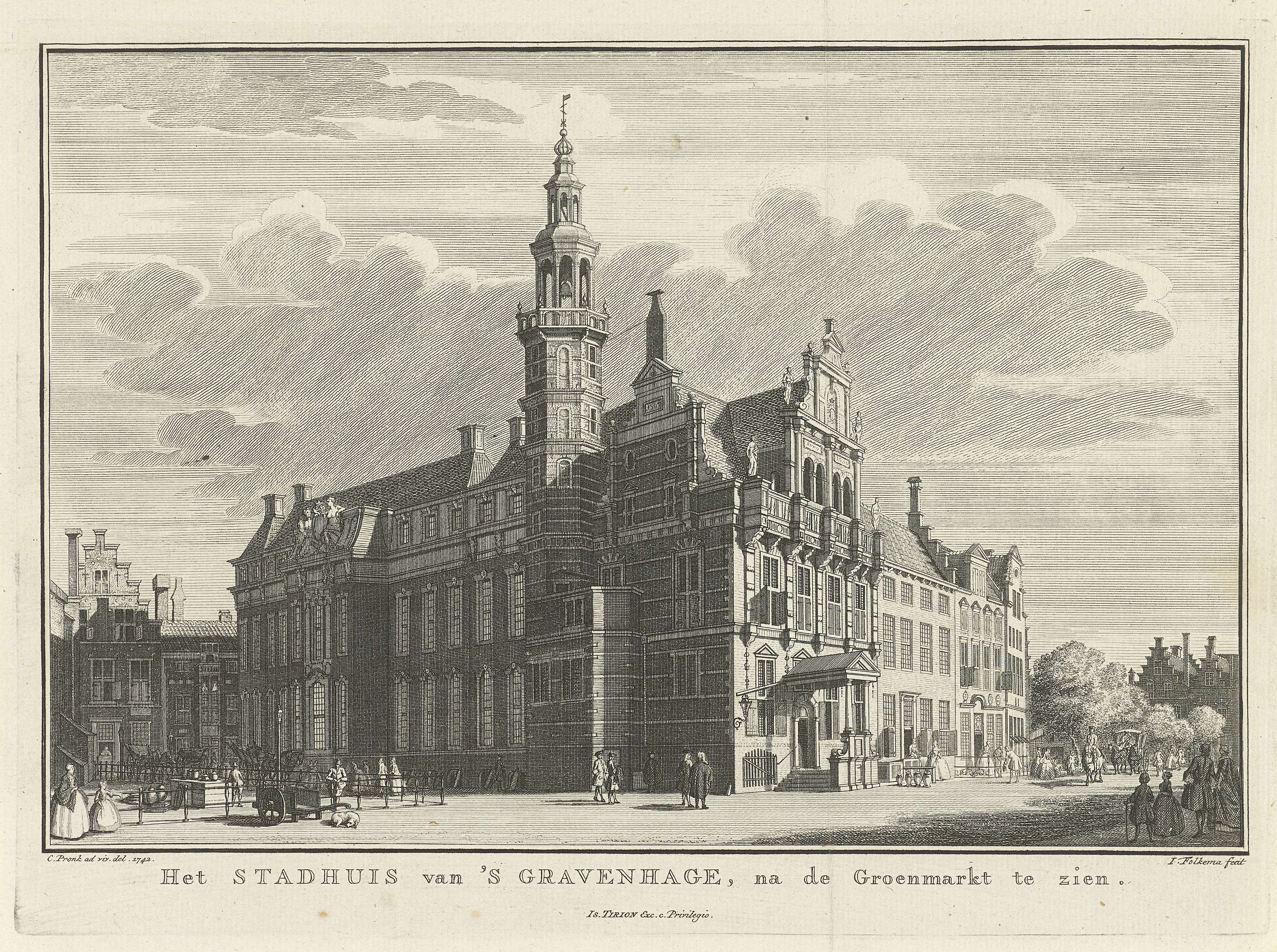 Gezicht op het oude stadhuis te Den Haag
