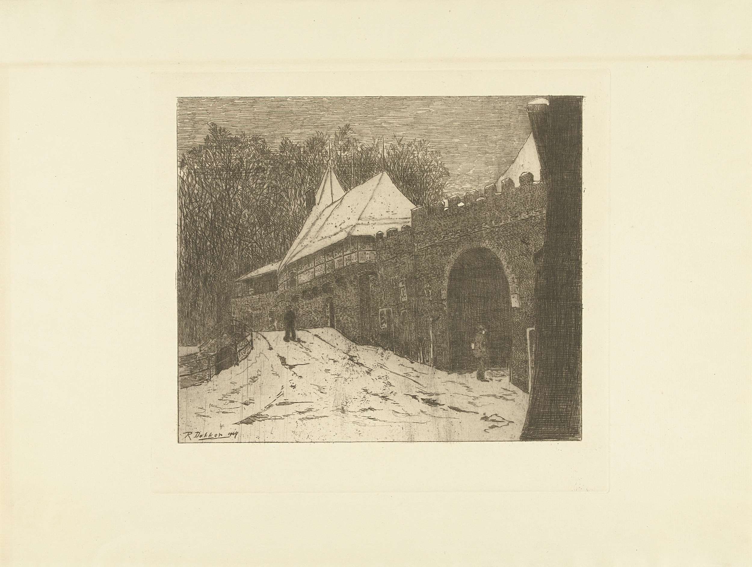 Stadsgezicht met Koppelpoort te Amersfoort in de sneeuw.