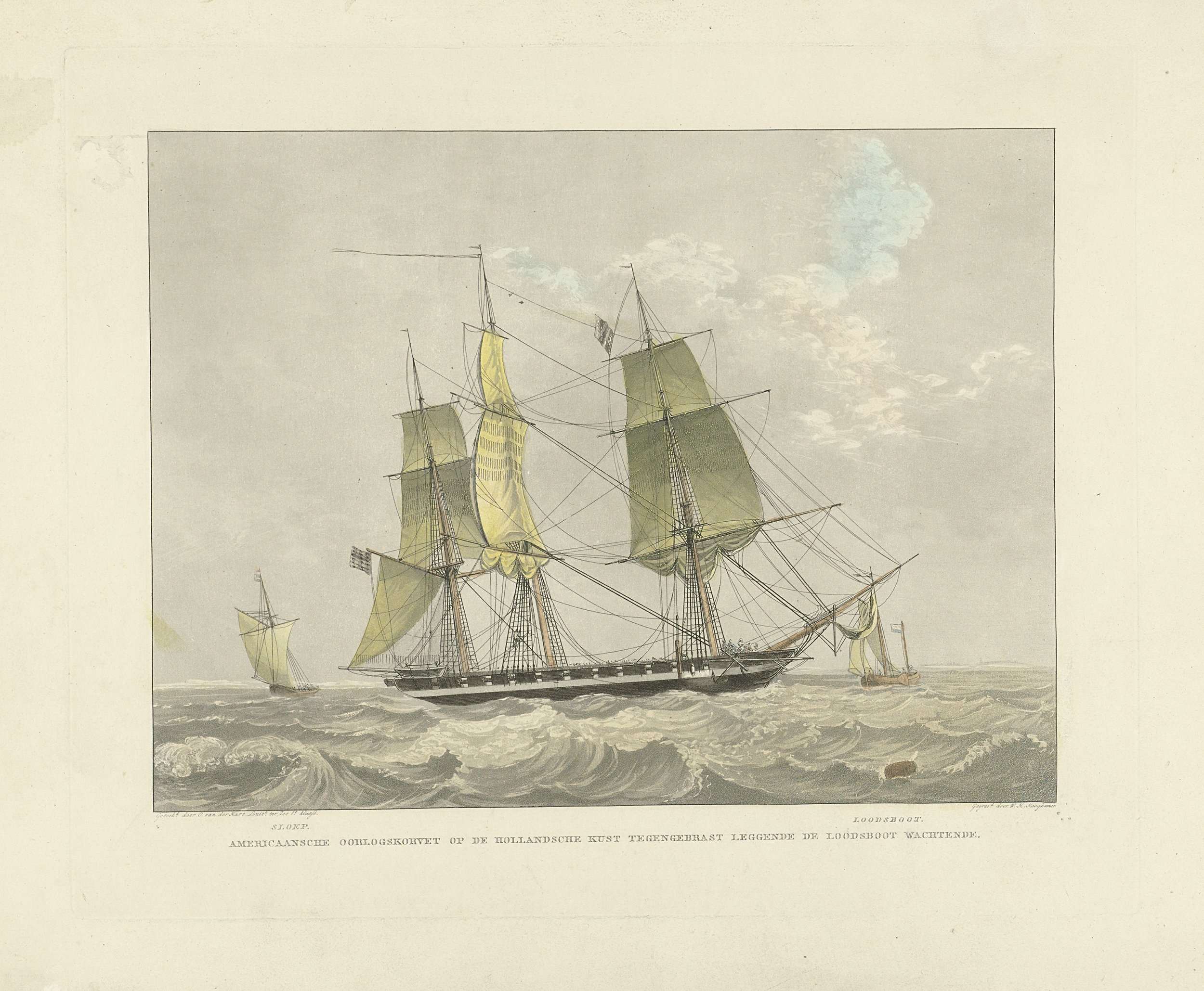 Zeilschip, sloep en loodsboot op het water