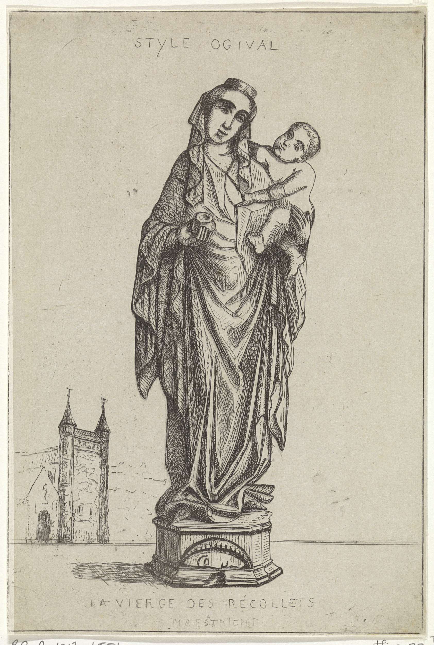 Op de achtergrond de Onze-Lieve-Vrouwe-Basiliek en de De Mérodekapel, de locatie van de sculptuur.