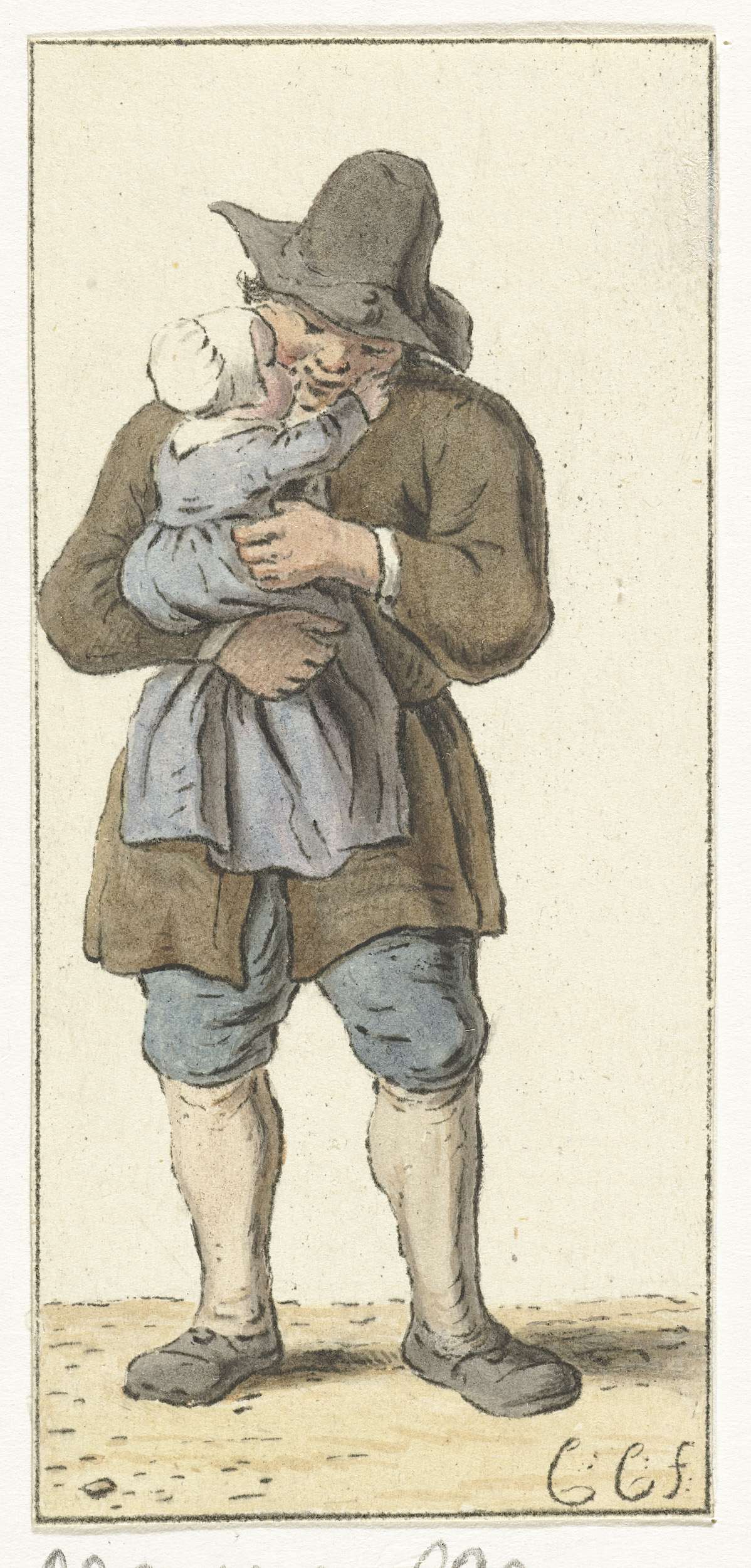 Een man met een kind in zijn armen.
