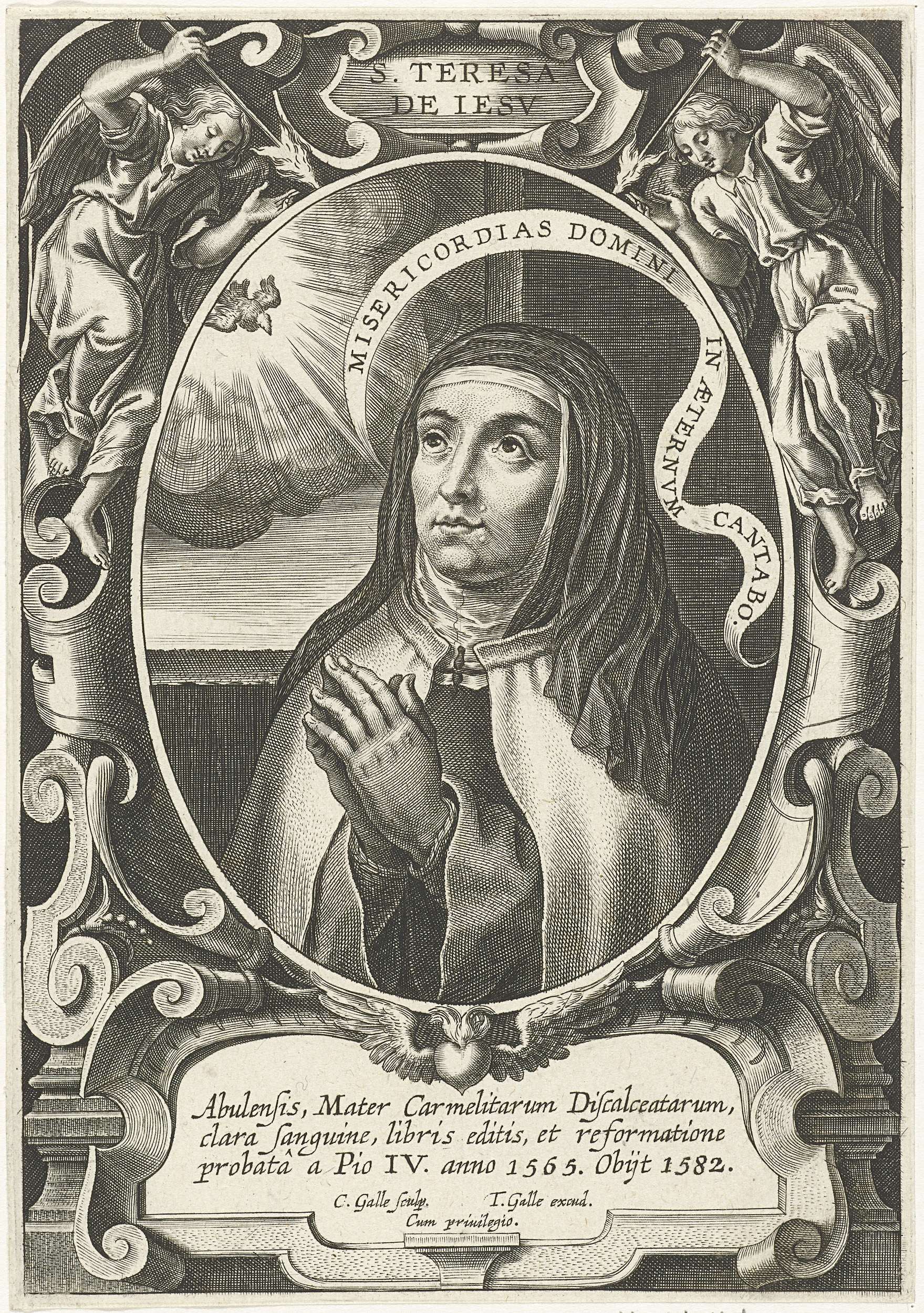 De heilige Theresia van Ávila in gebed met gevouwen handen. Theresia was de stichteres van de Orde van de Ongeschoeide Karmelieten. Deel van een serie van afbeeldingen van de bekendste stichters van de kloosterorden.
