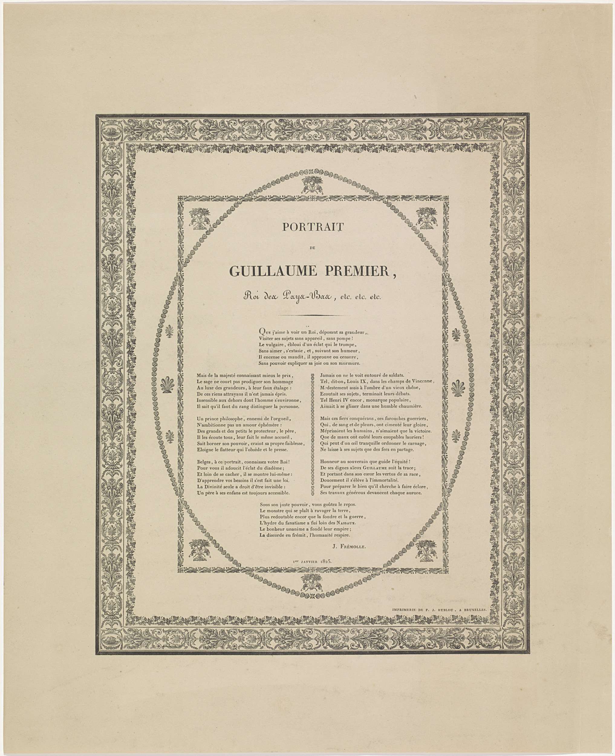 Tekst bij het portret van Willem I Frederik, koning der Nederlanden