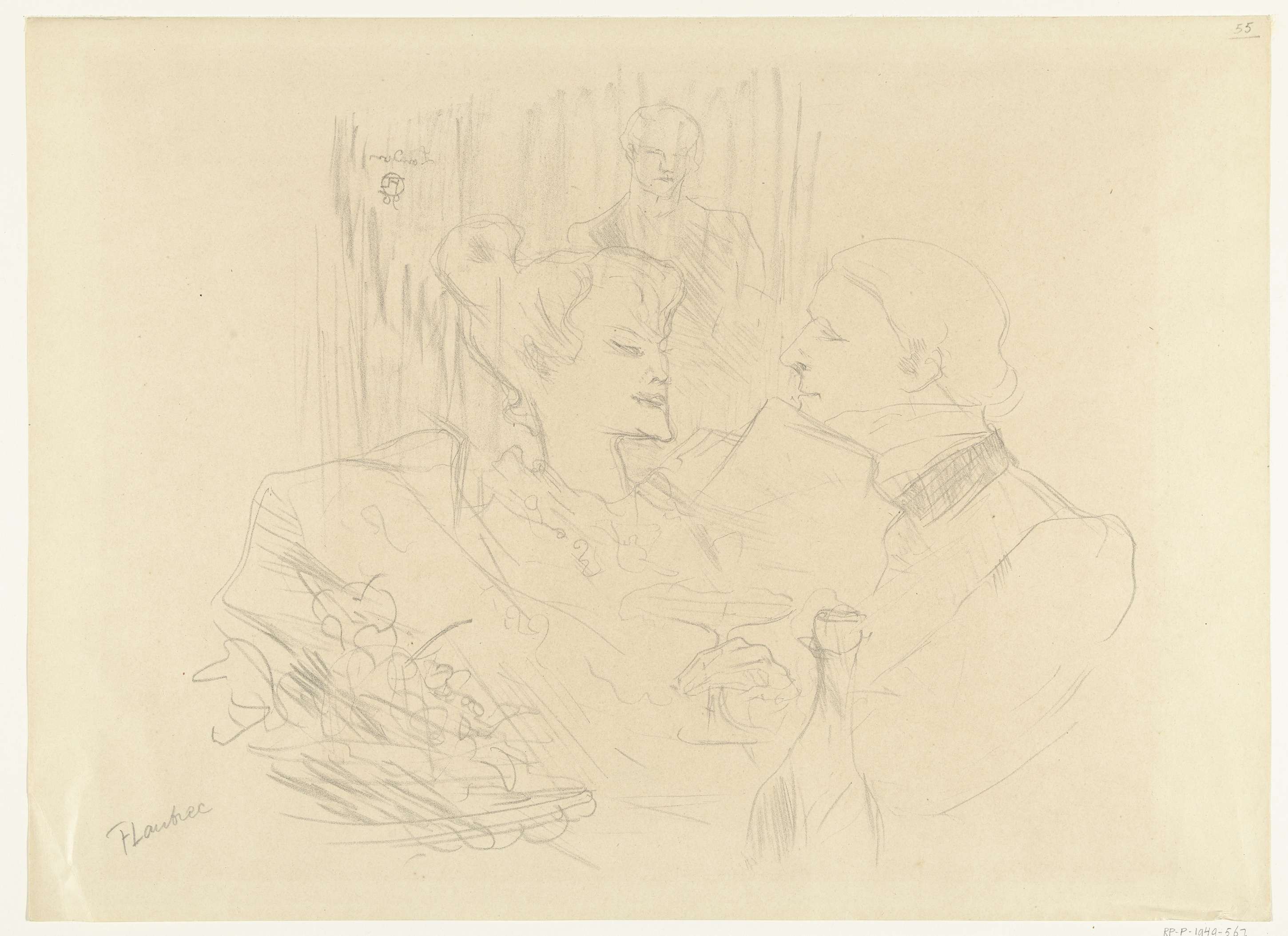 Portret van kunstenaar Charles Conder tijdens diner met een vrouw in Londen