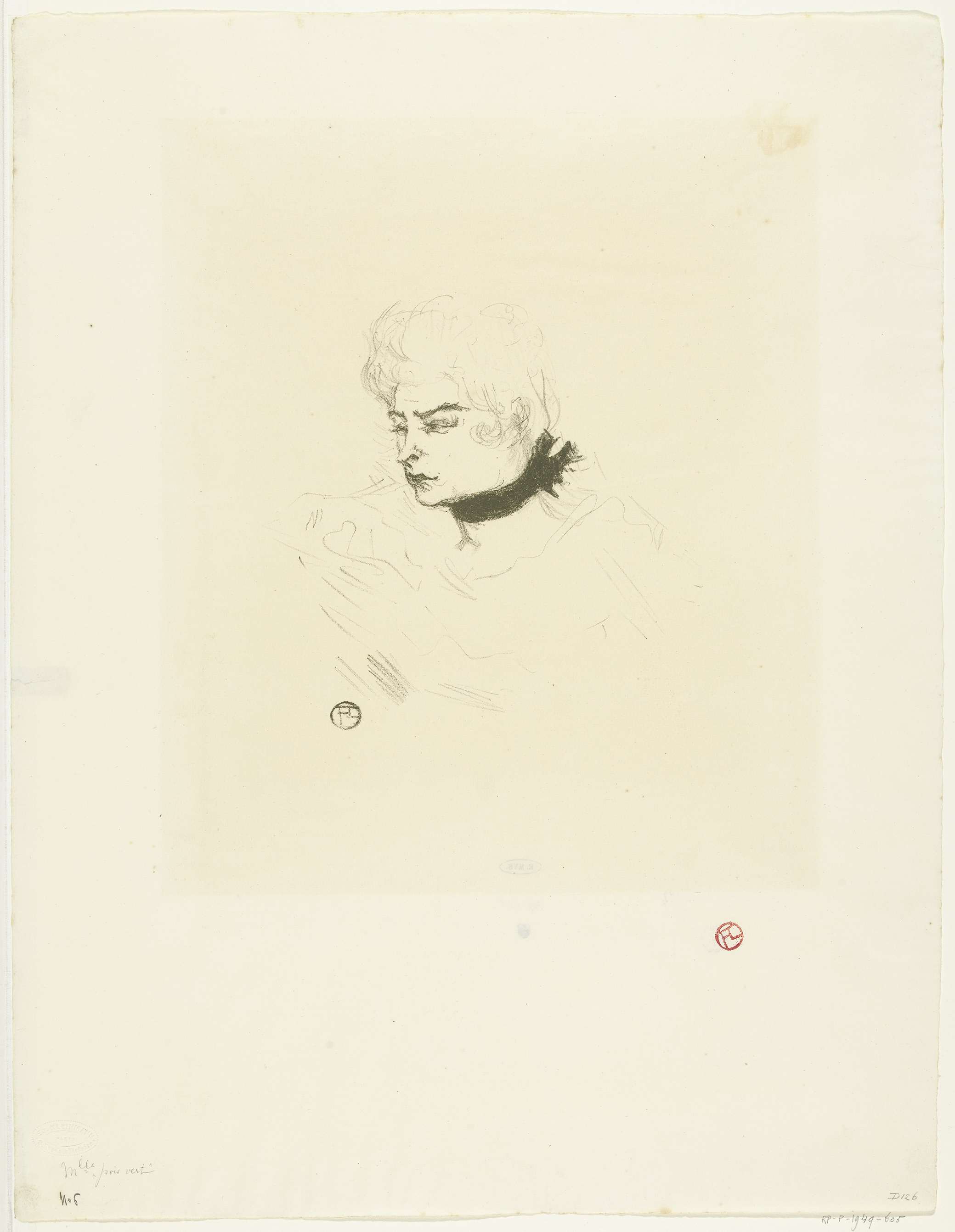 Dit portret van Mademoiselle Pois Vert is vlot geschetst met krijt op de steen. Er is weinig bekend over deze dame.