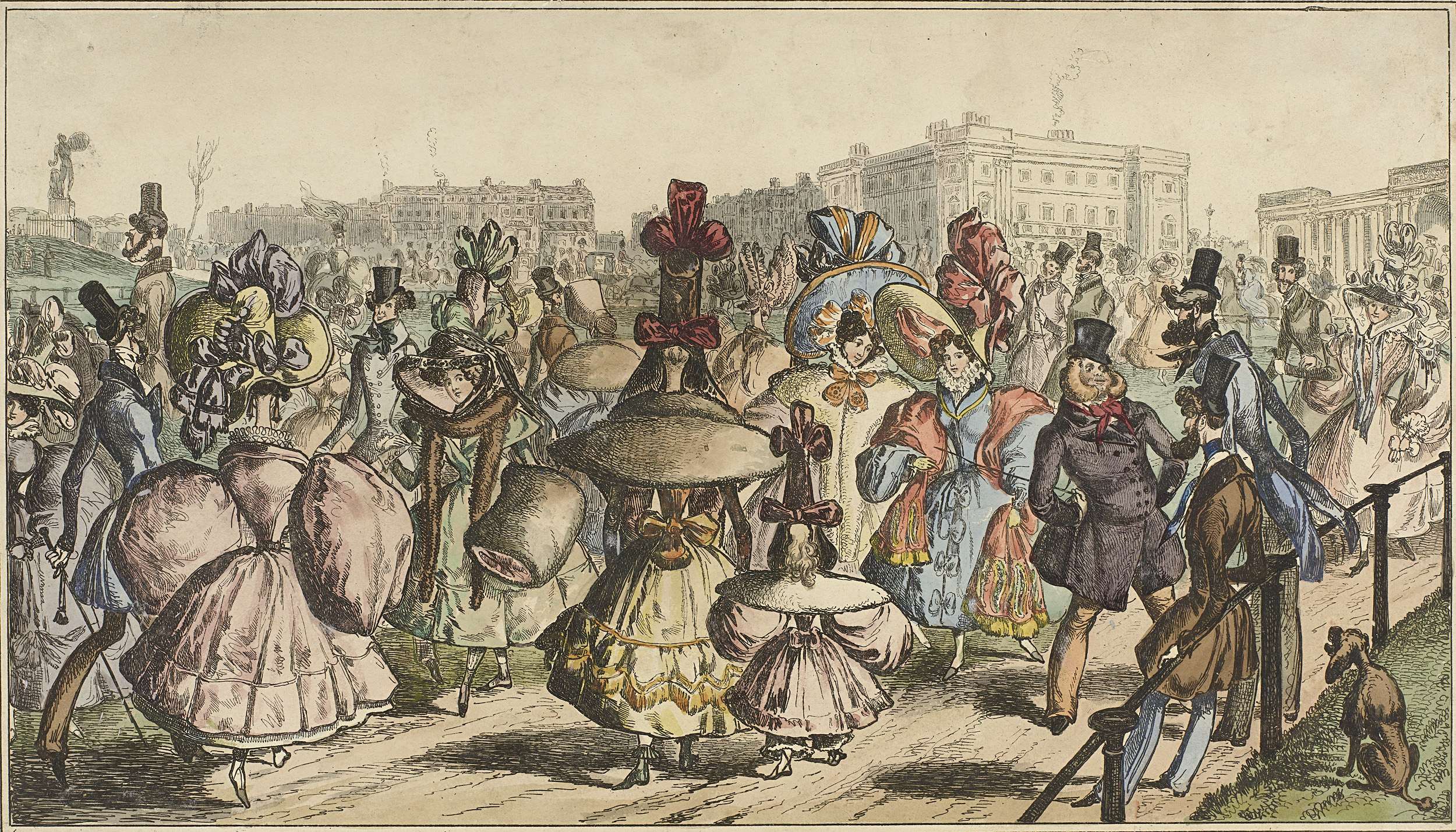 Spotprent op de mode en haardracht anno 1830.