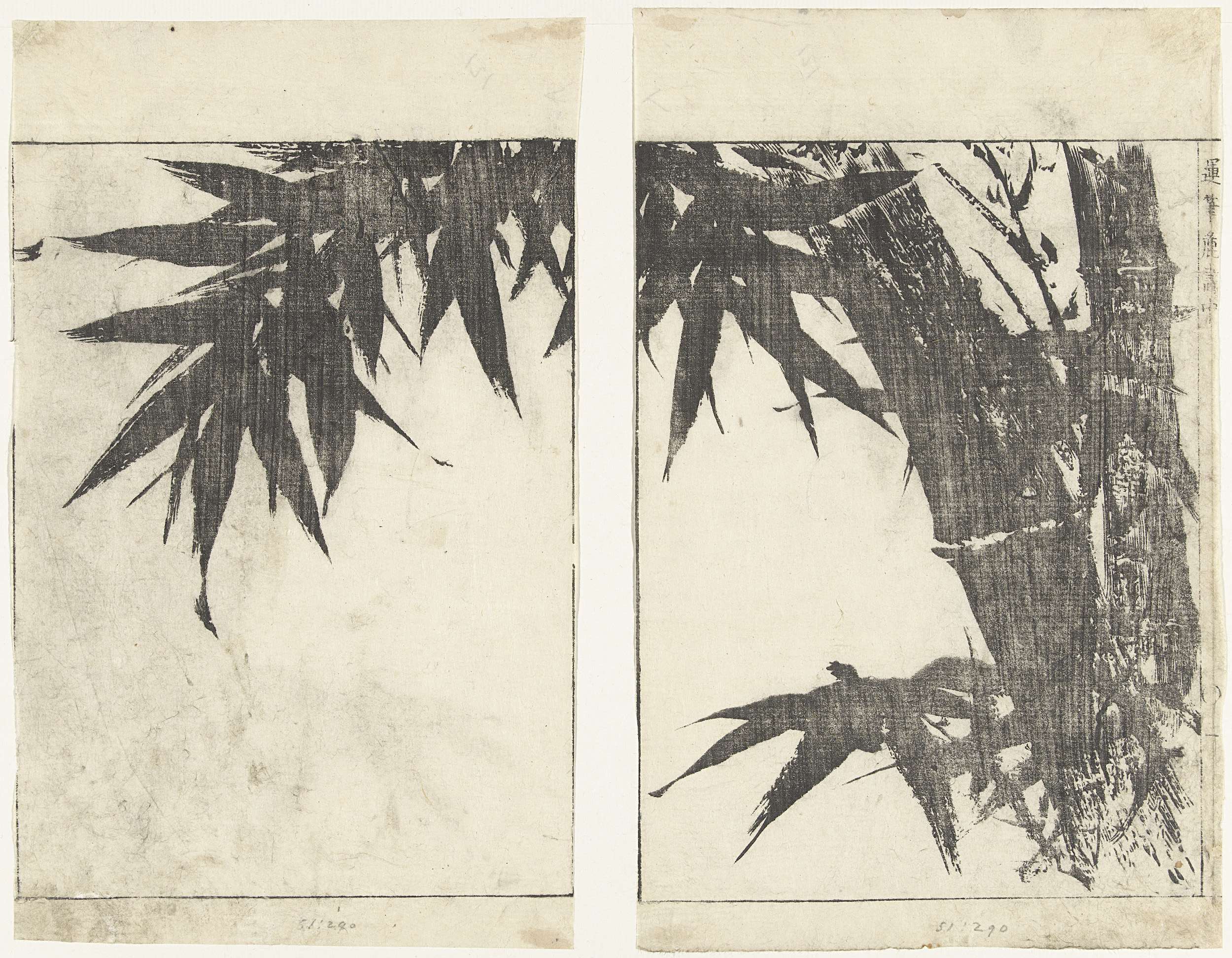 Twee pagina`s uit het Japanse boek Umpitsu soga; op het rechter blad het pagina nummer één.