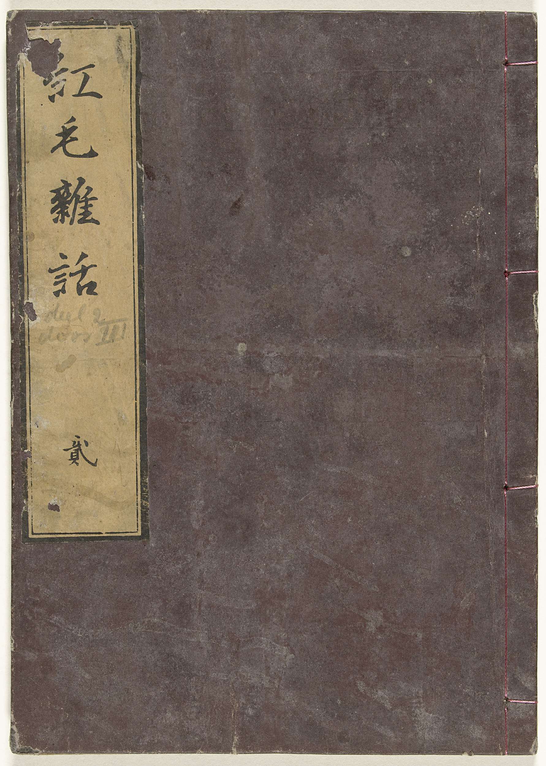 Deel twee (van vijf); roodbruine kaft met in blinddruk 'algemeen waereld kaart'; linksboven titelstrook; 19 bladen, genummerd: 1-19, wetenswaardigheden over verschillende landen. Illustraties van een begrafenisritueel in Indonesië, een gebalsemd lichaam en een vossenval.