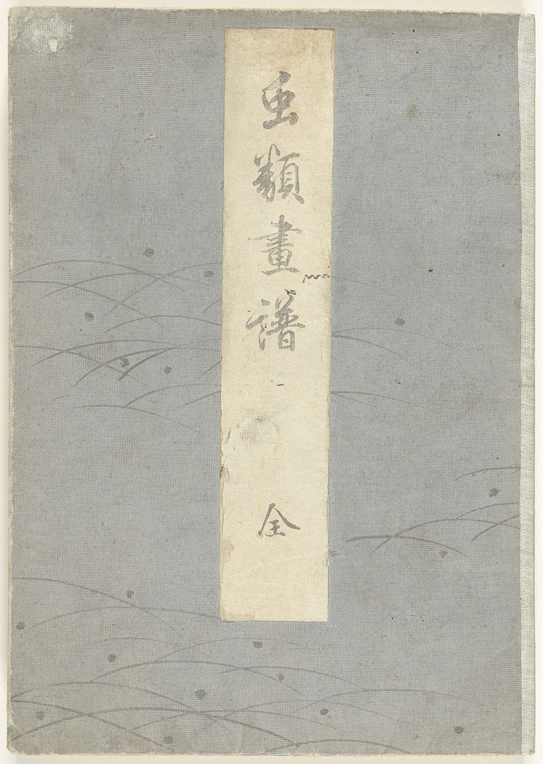 Meiji herdruk van de prenten uit deel één en twee van Utamaro`s insectenboek, als één deel uitgegeven. Lichtblauwe kaft met graspatroon; witte titelstrook; 18 bladen: pagina één en twee, inhoudsopgave; 15 prenten, elk over twee pagina`s, met afbeeldingen van insecten op bloemen en planten; laatste twee pagina`s, colofon. Bewaard in een groenbruin doosje.