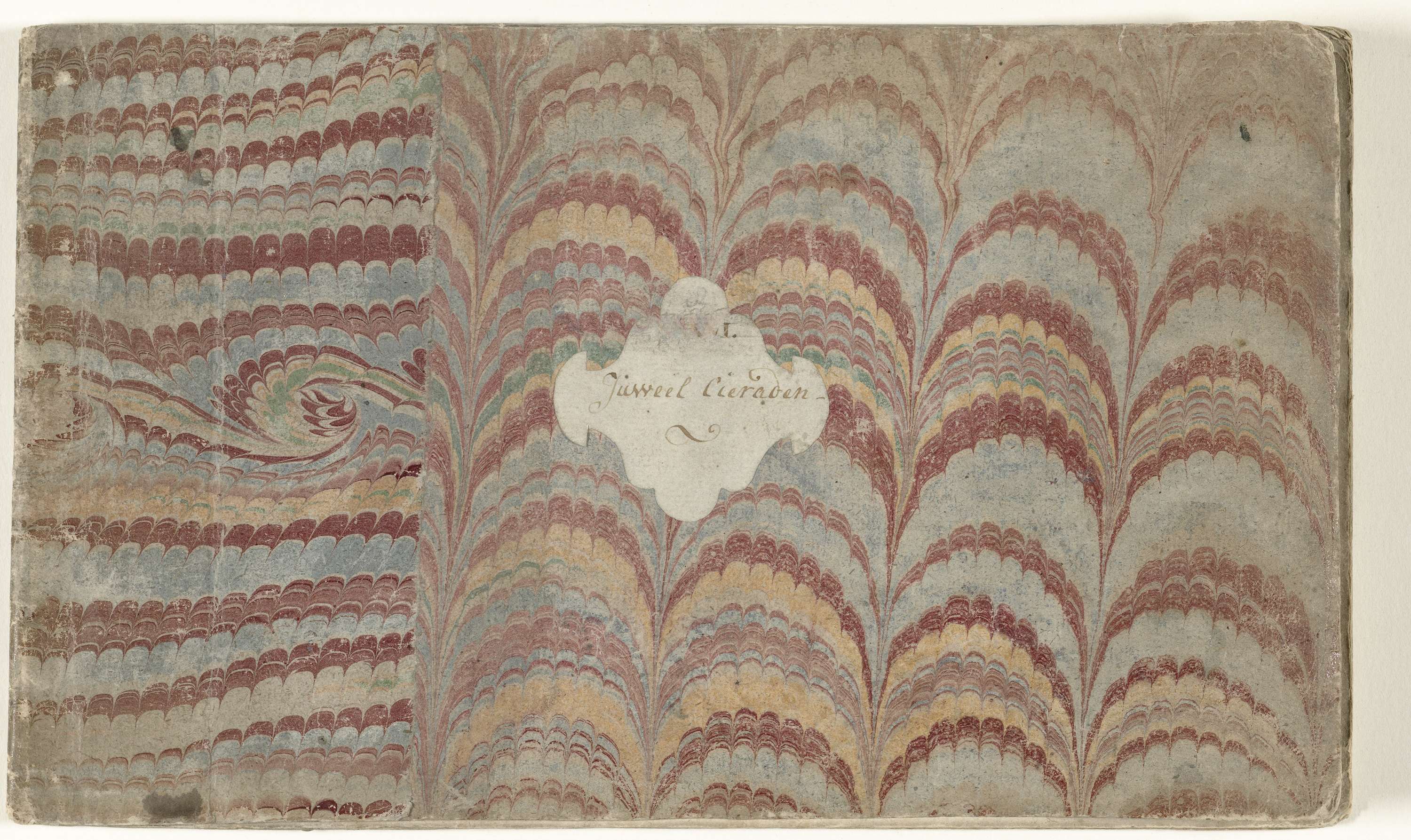 Boekje bestaande uit 8 bladen met ontwerpen voor juwelen met parels en edelstenen. Gebonden in een omslag van gemarmerd papier met een label: ...Juweel Cieraden. Aan de binnenzijde van het voorblad staat: 8 Platen, Verzameling van Vorstelijke Juweel Sieraden. Tweede editie.