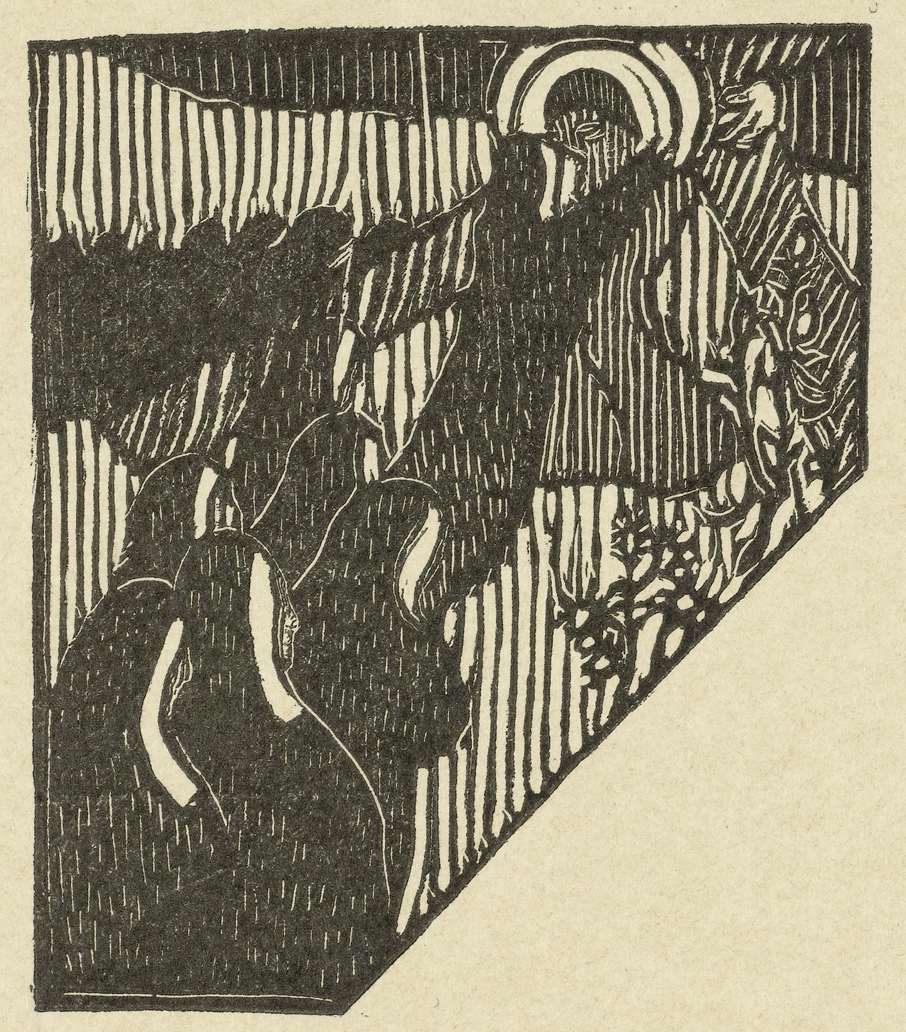 Illustratie bij gedicht in dichtbundel Sagesse van Paul Verlaine. Christus draagt het kruis en wordt omhelsd door non. Andere nonnen volgen Christus op zijn weg.