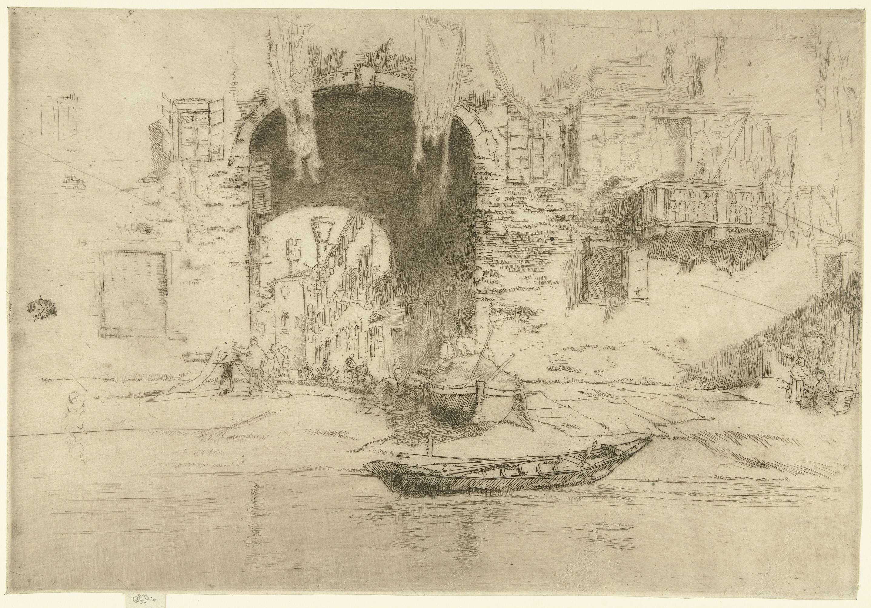Gezicht vanaf het water op kade met de oude poort bij San Biagio, Venetië.
