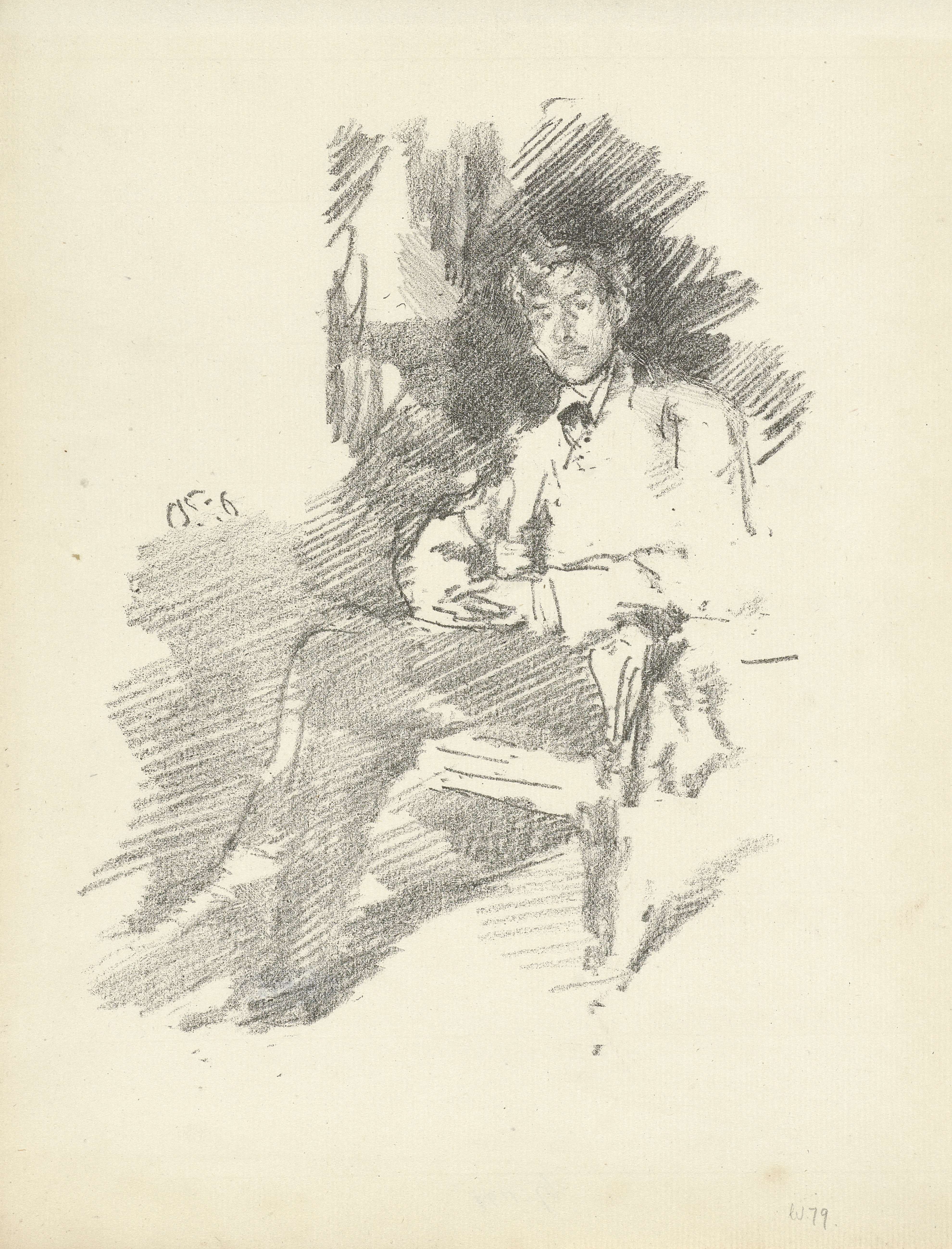 Portret van de van oorsprong Duitse kunstenaar en schrijver Walter Sickert, zittend in een stoel.