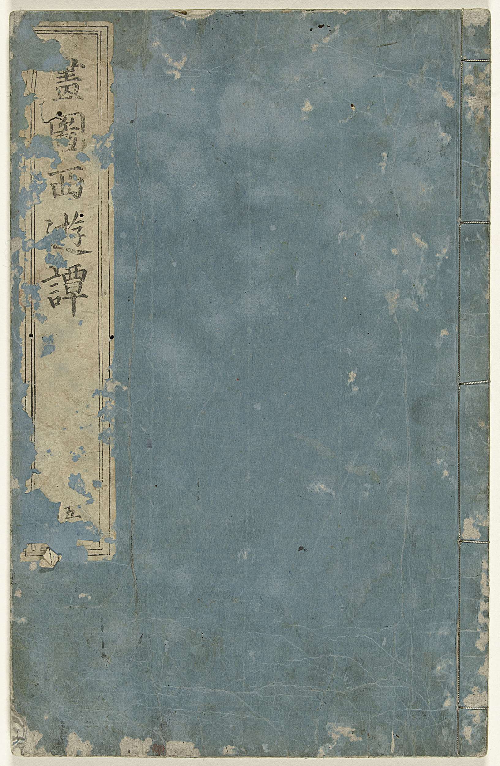 Deel vier (van vijf); blauwe kaft; linksboven titelstrook; 20 bladen, genummerd: 1-18, tekst en zwart-wit afbeeldingen over de reis van Kokan naar Nagasaki; bergen en bergdorpjes; 2 bladen advertenties.