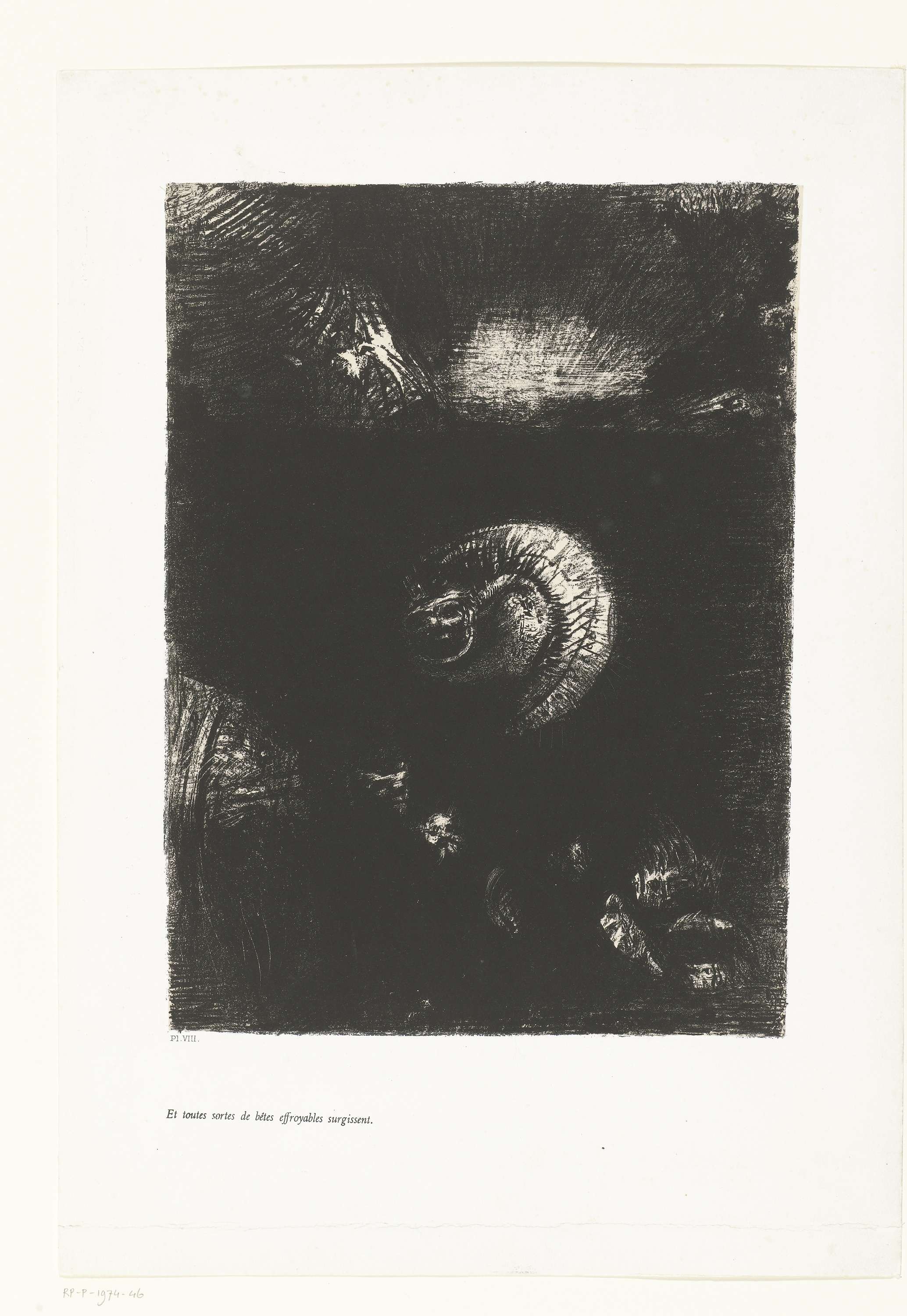 Monsterlijke wezens in de nacht. Achtste prent van tien uit de eerste serie illustraties voor Gustave Flauberts De verzoeking van de heilige Antonius.